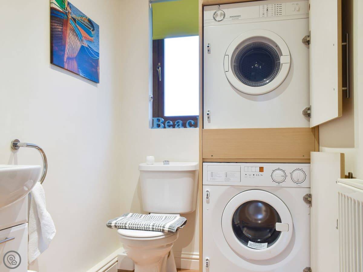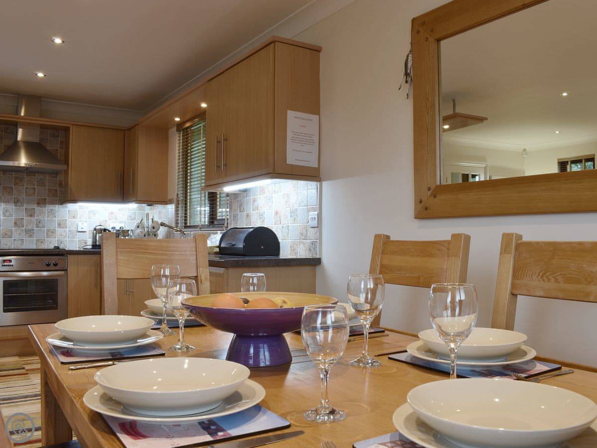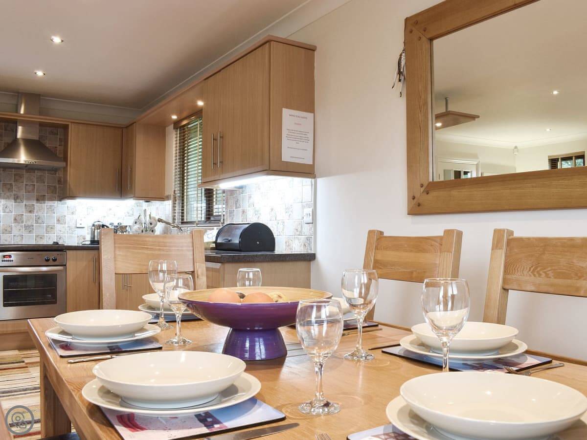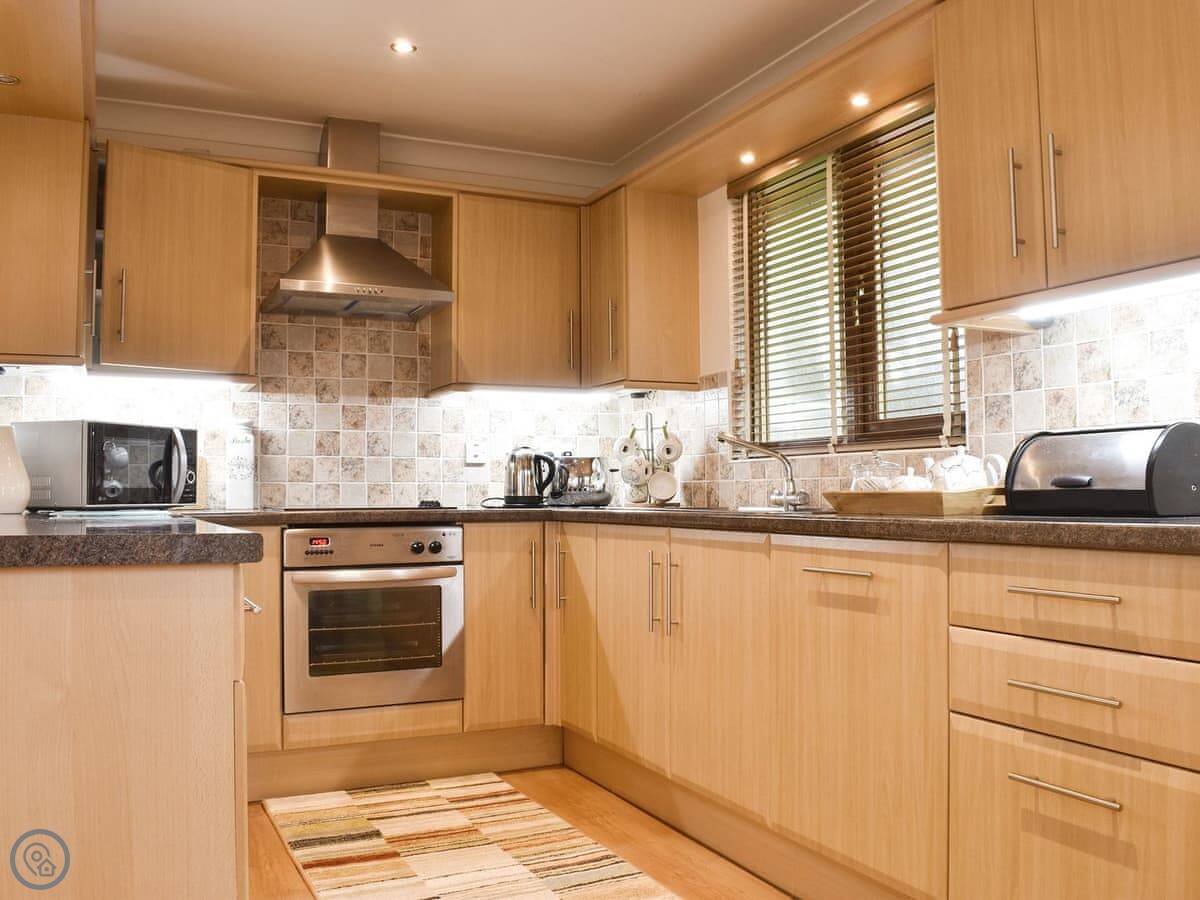 The place is all on one level and the doorways are wide, which is good if you're bringing a wheelchair. There's a patio with a table and chairs. Inside it's open plan, so it feels quite spacious. The kitchen has a dishwasher and a washing machine.