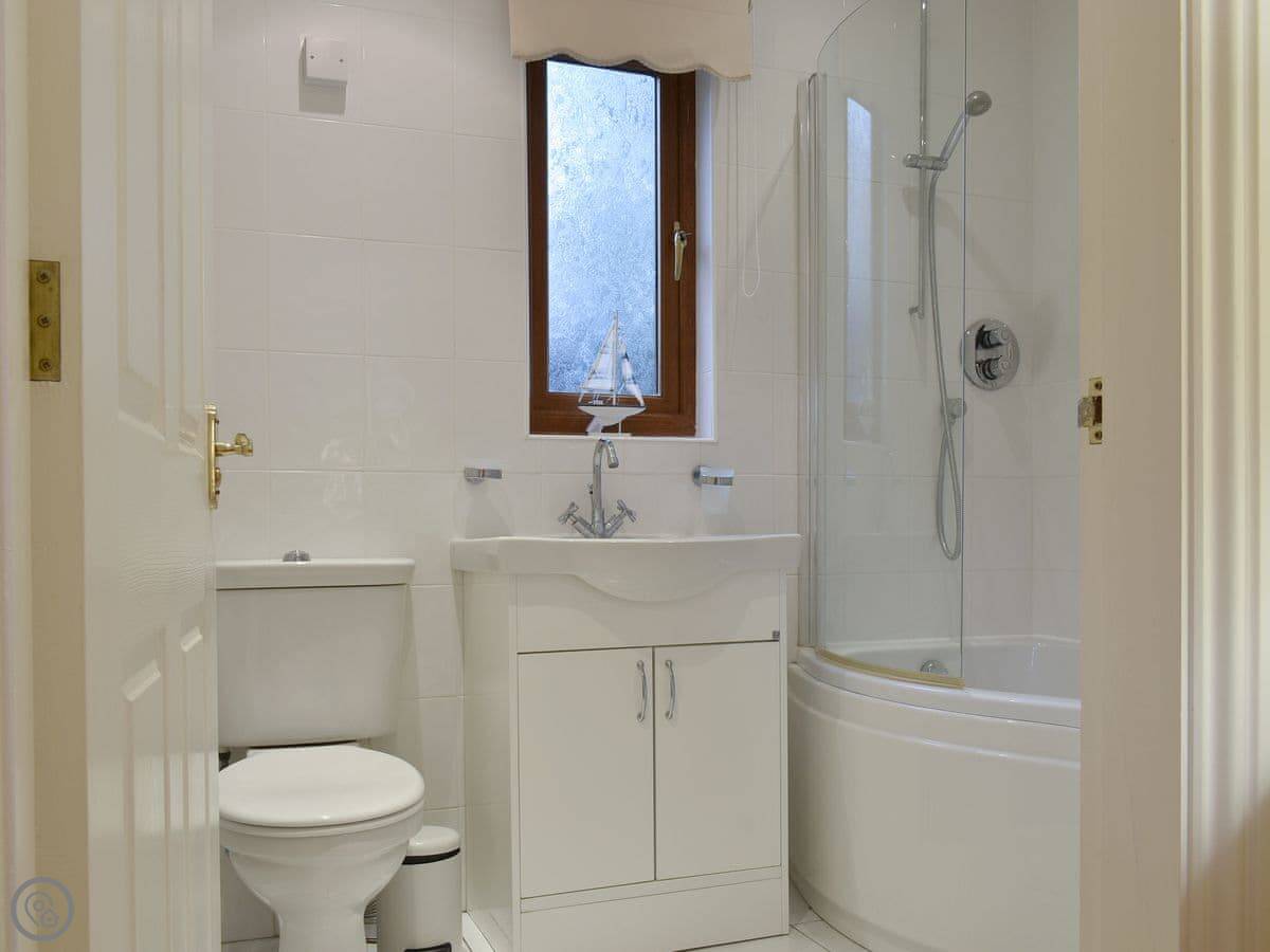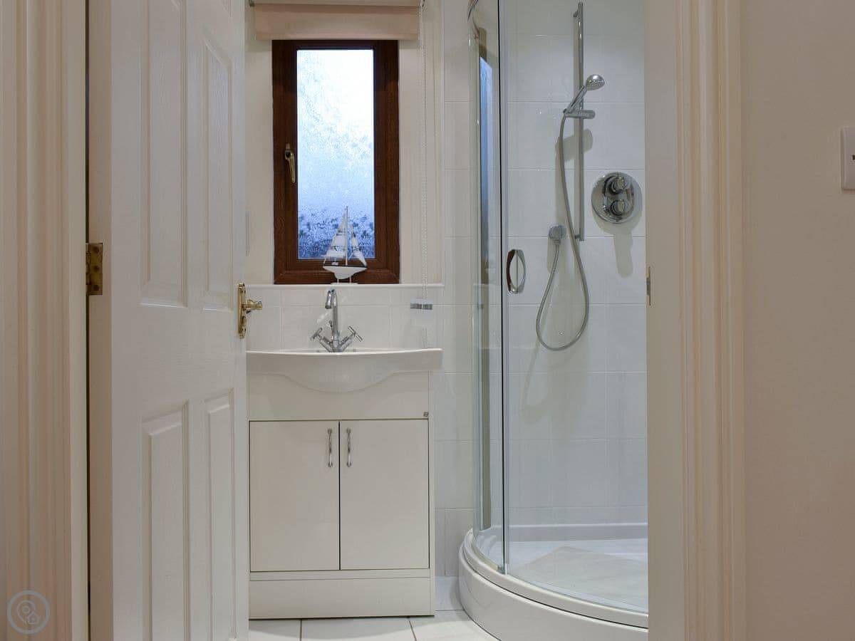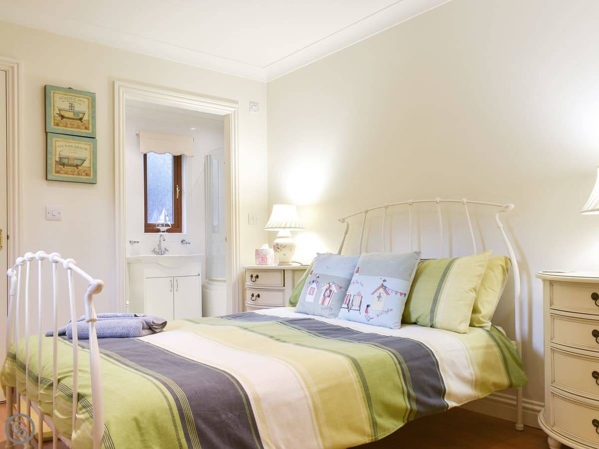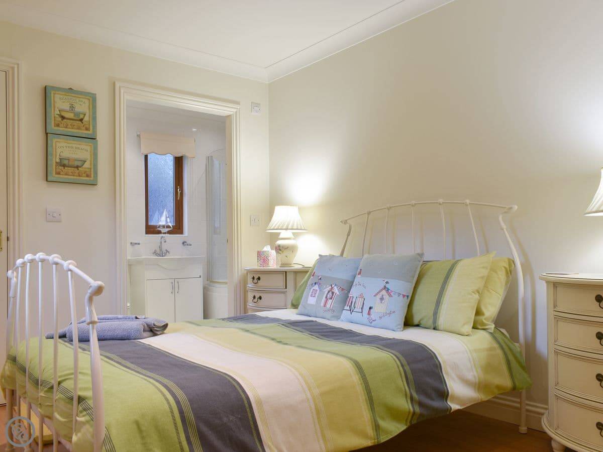 It sleeps four, in two bedrooms. Both bedrooms have their own en-suite shower room, which is handy. There's also a sofa bed in the living area if you need it. It's got a 4 Star rating, so it's comfortable and well-equipped.