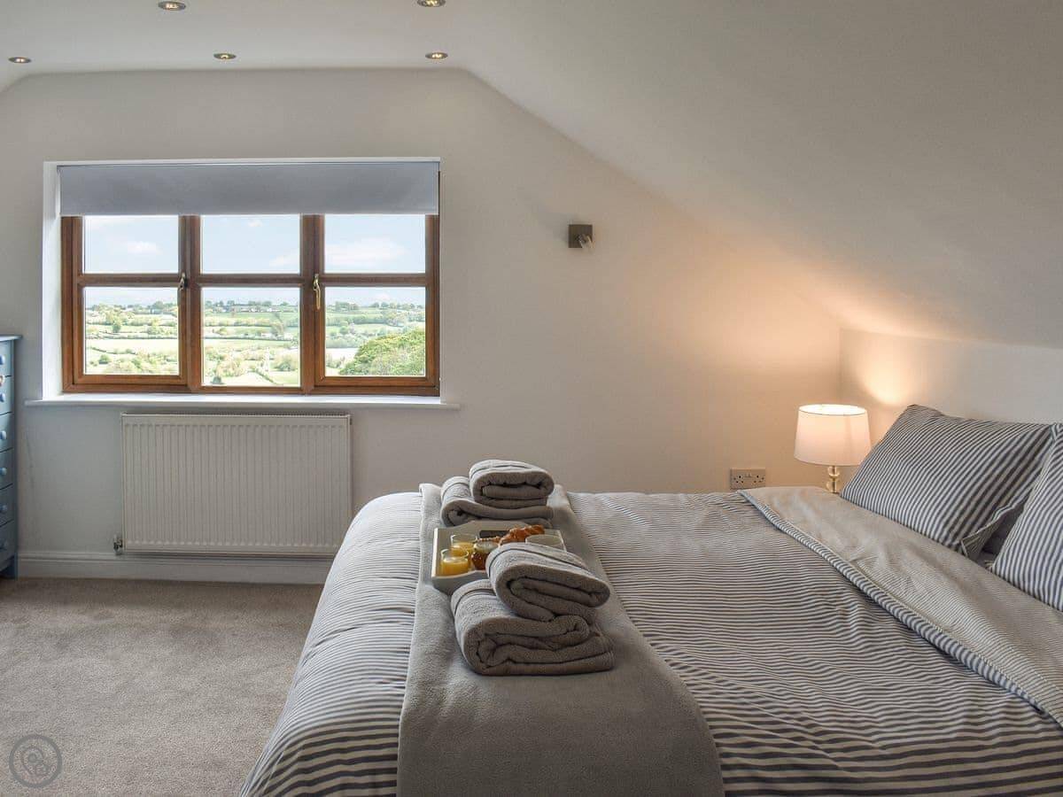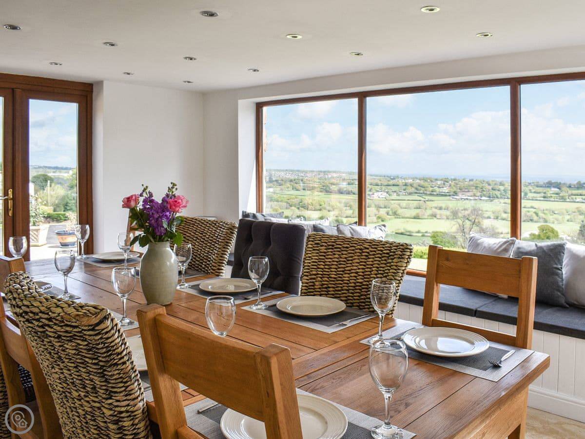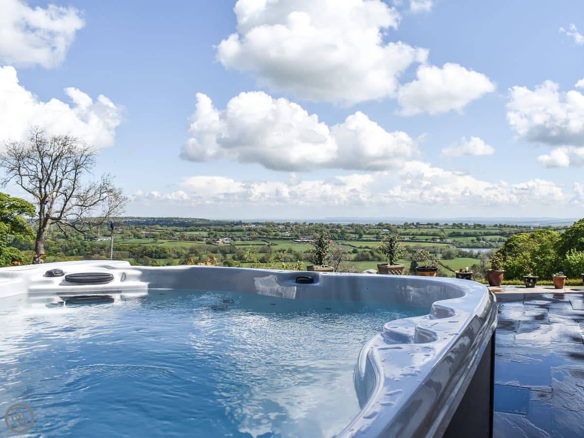Situated in the rural hamlet of Pontybodkin, within close proximity to the traditional market town of Mold, this large, detached holiday home has been thoughtfully put together with comfort in mind, making this the ideal place for rural escapes with friends and family. On arrival, you will be greeted by a spacious driveway with open grounds boasting glorious views over the rolling countryside. Step inside and indulge in the spacious living areas which unfold from the doorstep, consisting of a large living room with a cosy wood burner which flows seamlessly through to the exquisite kitchen and dining area. Each bedroom has been immaculately presented featuring sumptuous pocket sprung mattresses dressed in crisp linen, with the master bathroom featuring an en-suite bathroom for that added touch. Outside, the wide open space with patio areas and bubbling hot tub make the ideal place to relax and unwind following a busy day’s adventure, allowing everyone to roam with ease whilst enjoy outdoor games.