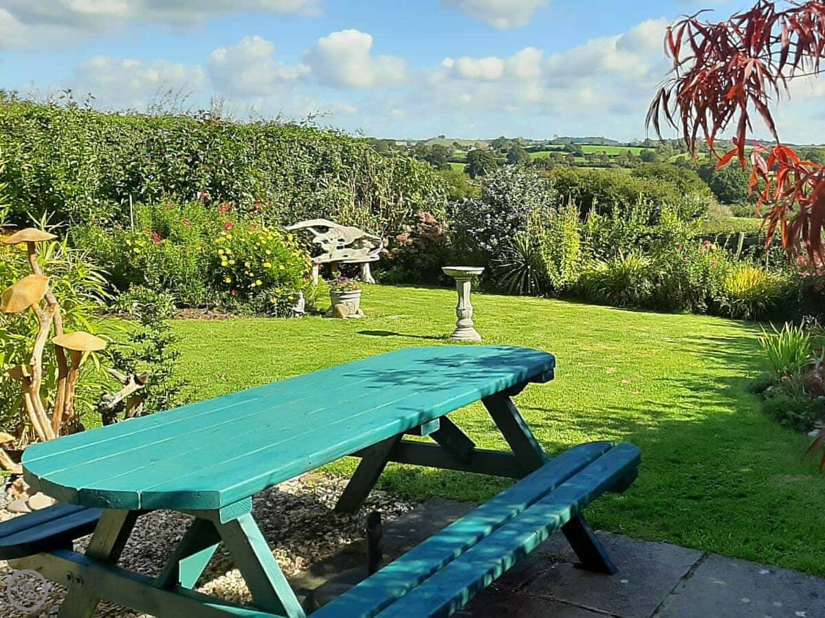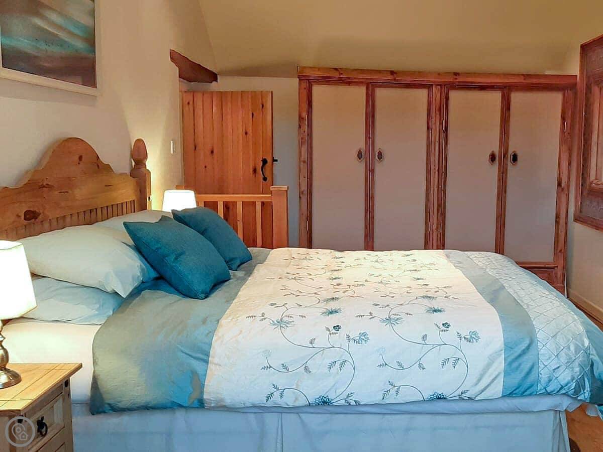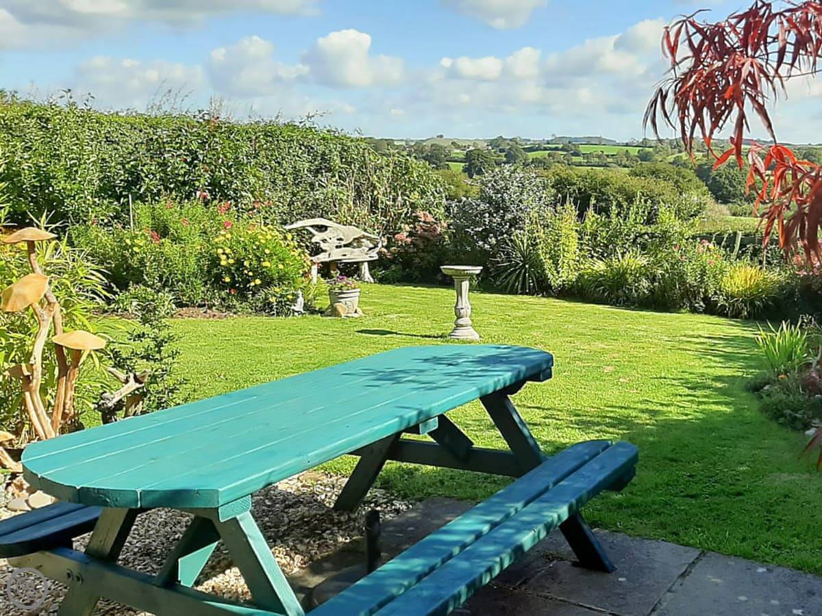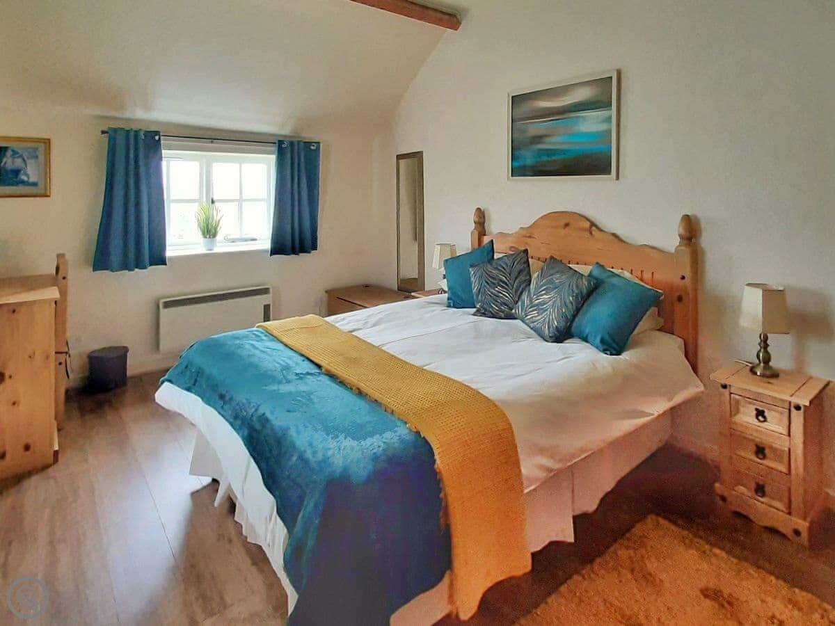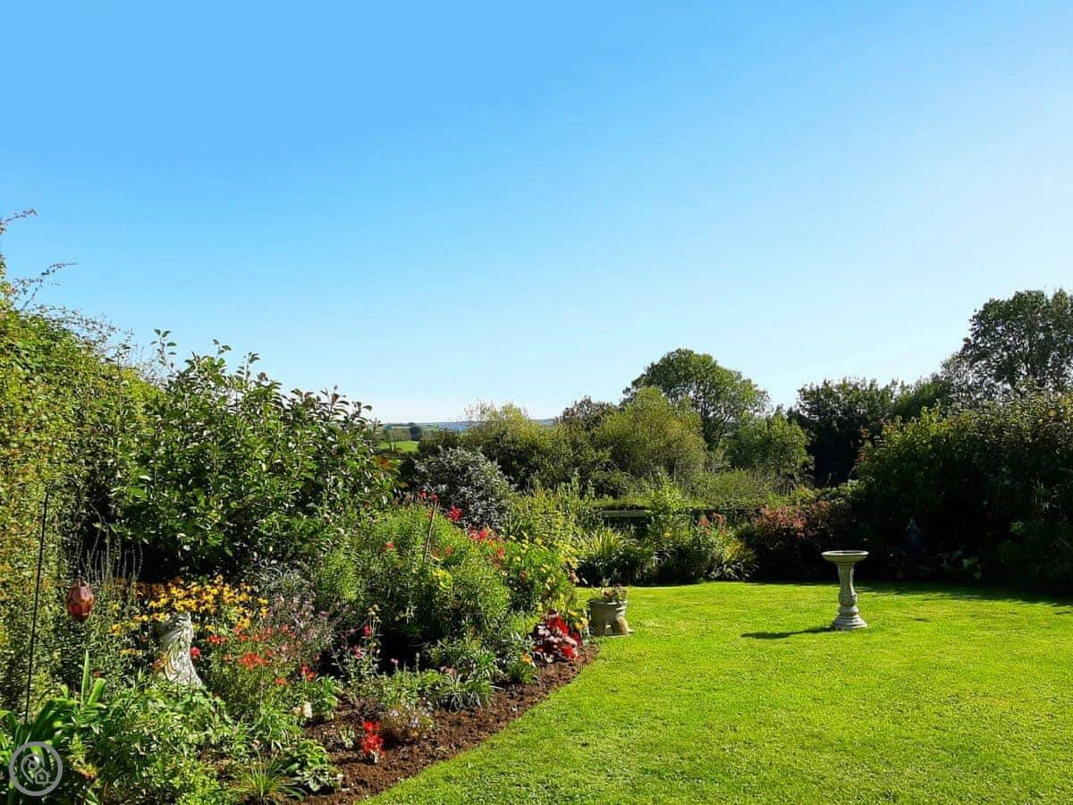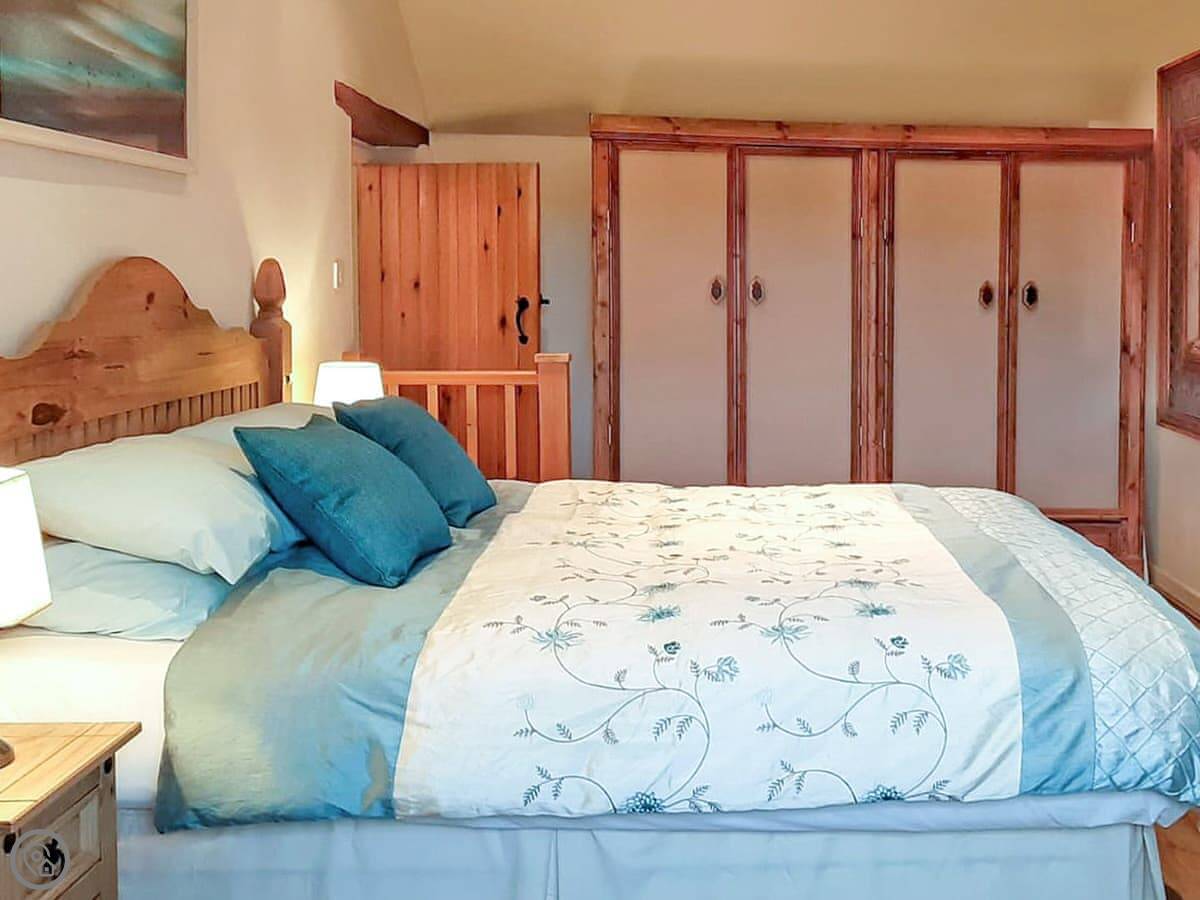 As you enter through the stable door, the hallway leads to a large open plan kitchen and living space which is colourful and comfortably furnished with two sofas, one of which is a double sofa bed There is also a 38" Smart TV, and a dining table. A high ceiling and exposed beams give a bright and spacious feel, with cosy sofas to curl up on after a long day of exploring. The well-equipped kitchen ensures you have everything you need if you fancy some home cooking, the shower room is also on this level, there is one step up from the hallway leading to the inviting double bedroom which has a lovely view out over the garden. From the living area, there is a peaceful rear, an enclosed terrace and a small lawn, with beautiful views across the valley, a haven for birds and butterflies.