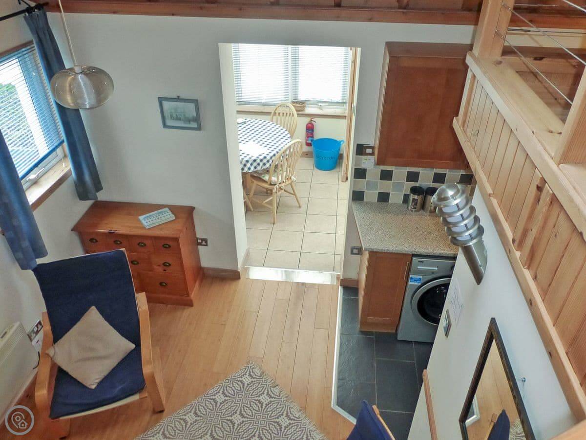 For facilities, it's got WiFi, a TV, washing machine, dishwasher. Bedding and towels are included. The electricity is all in the price. No pets, sorry. The entrance is level so it's okay for wheelchairs, but inside the stairs mean it's not fully accessible.