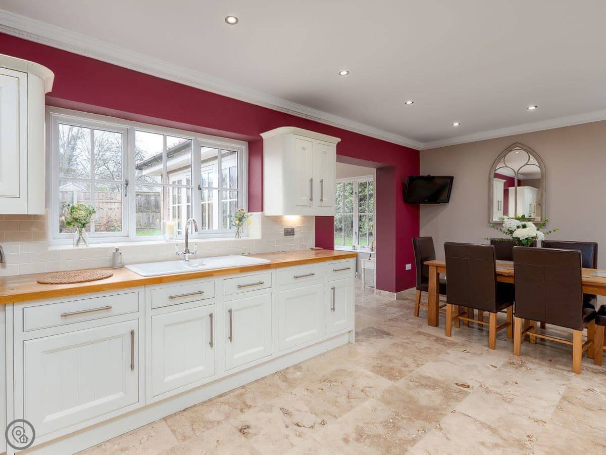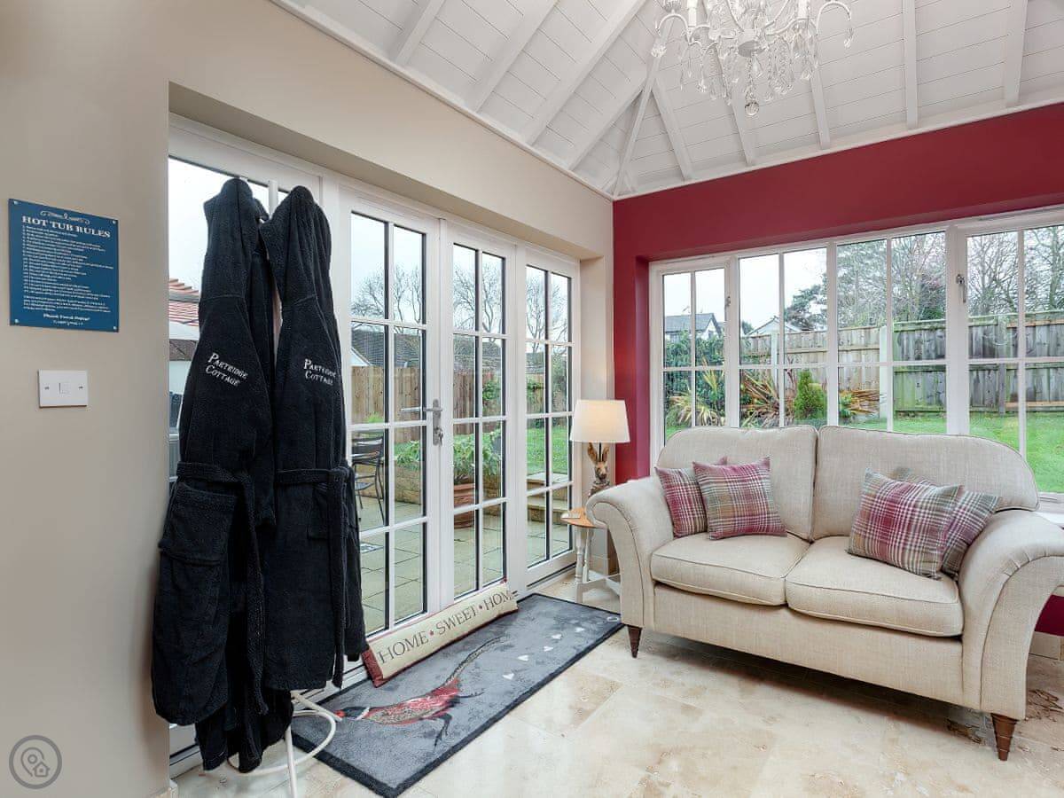 Partridge Cottage is a detached bungalow in Kirklevington, North Yorkshire. It's all on one level, which is handy for some. It's got three bedrooms which sleep six, and two bathrooms. Everything is a good size.