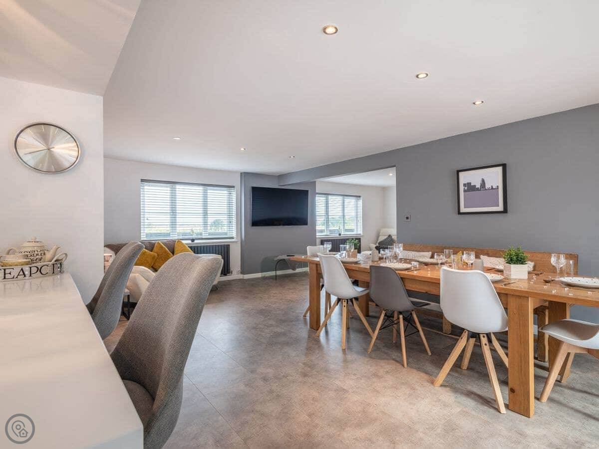 Mill House is in Fritton, Norfolk. It’s a detached house, modern build. Sleeps ten, five bedrooms, two bathrooms. The 5 Star rating means it’s well-finished and comfortable.