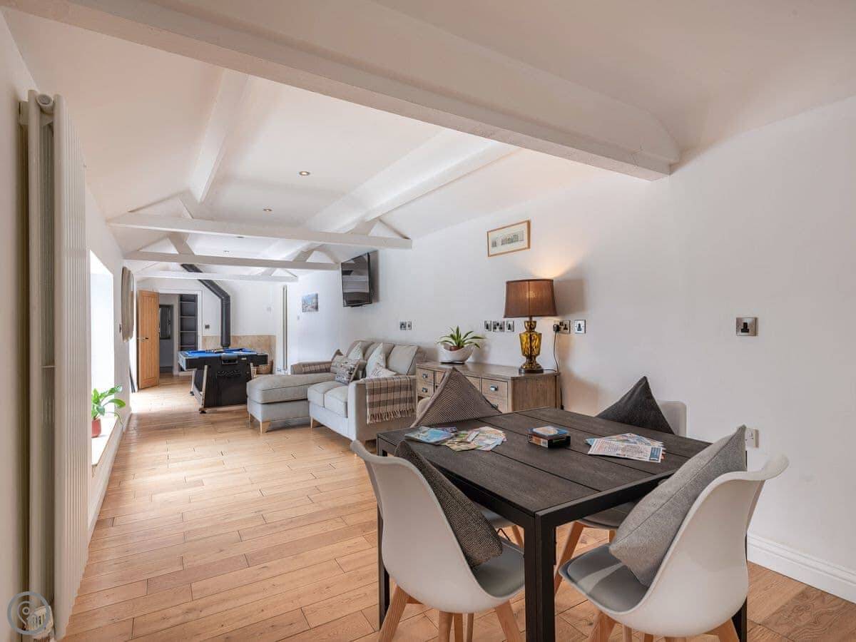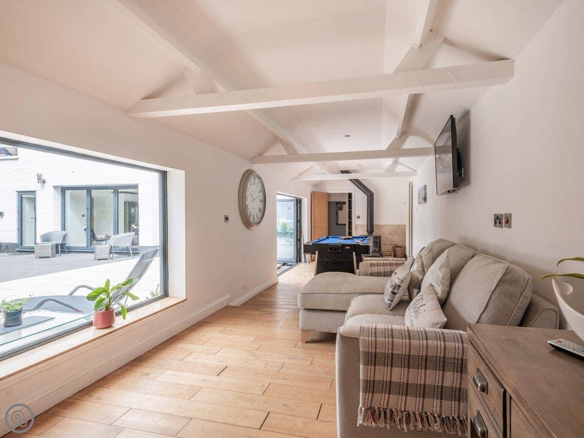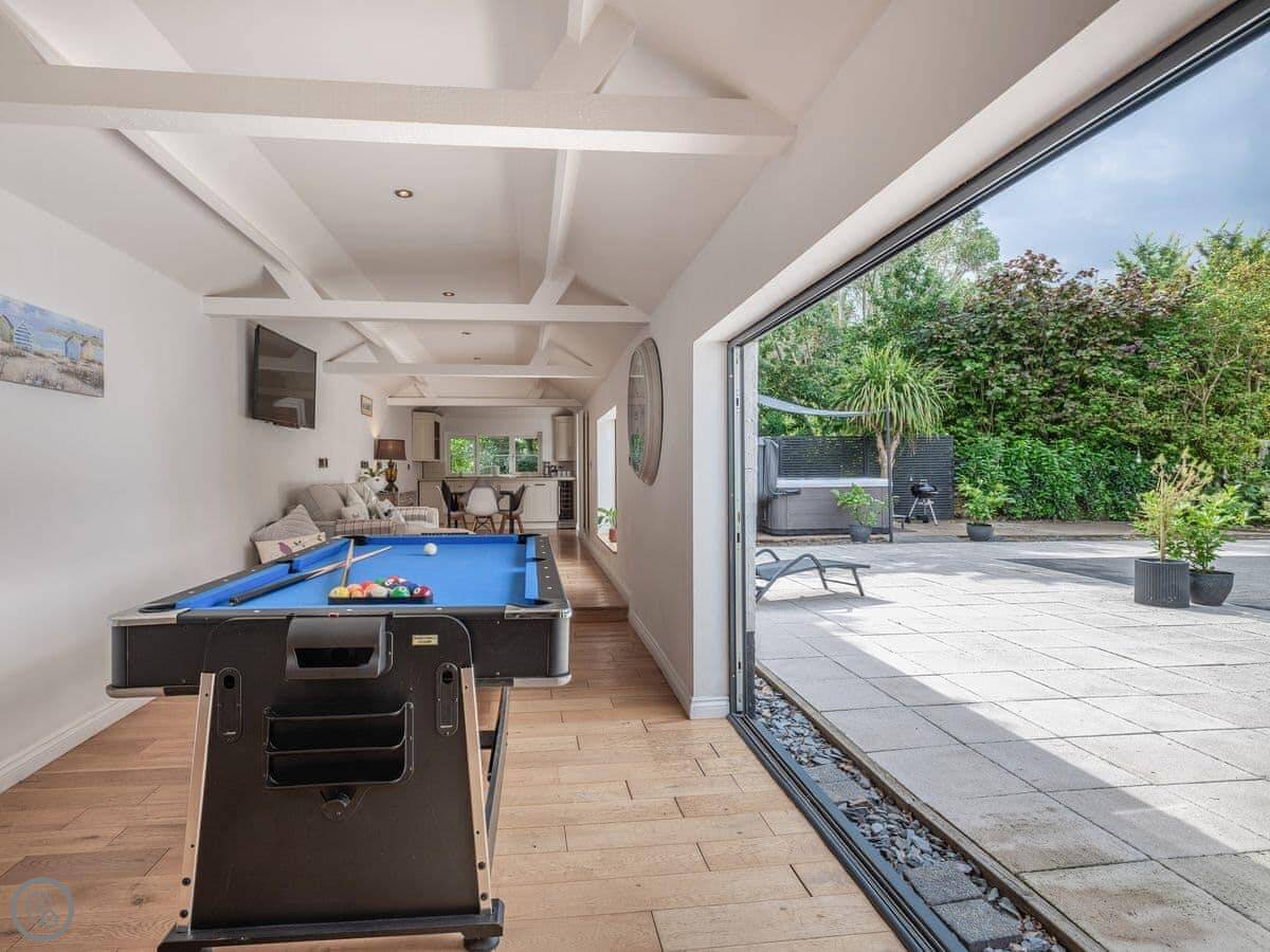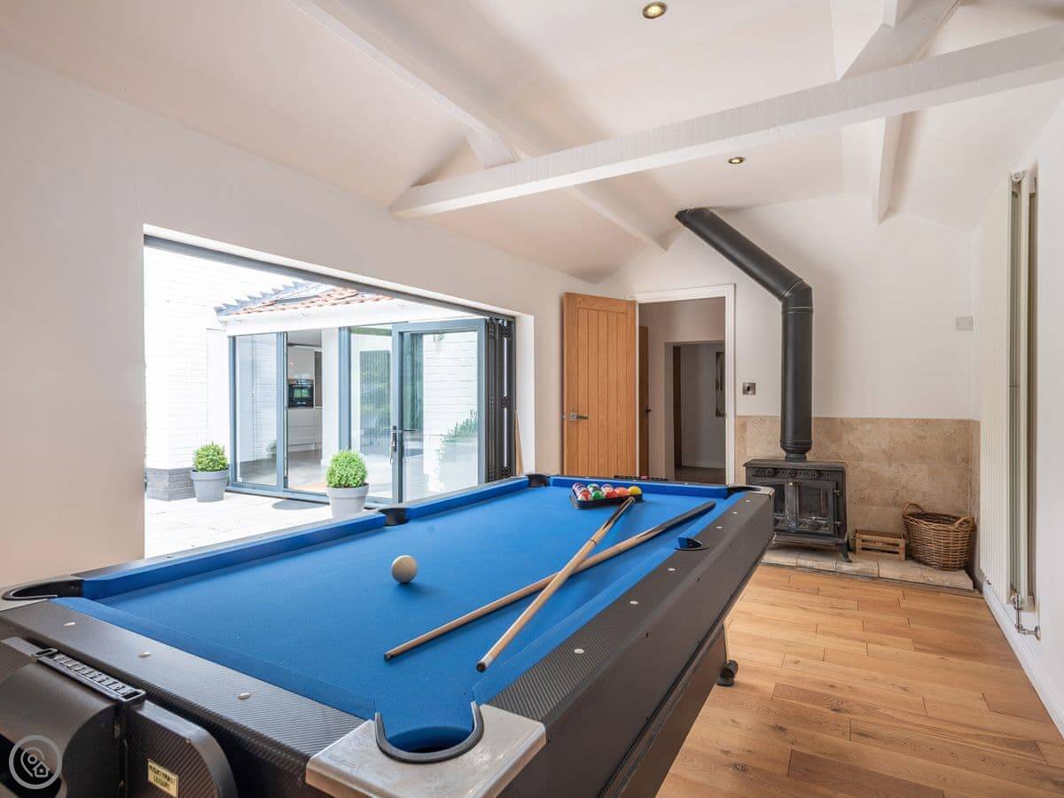 There's a games room with a pool table, a sofa and a wood burner. Good if the weather turns.