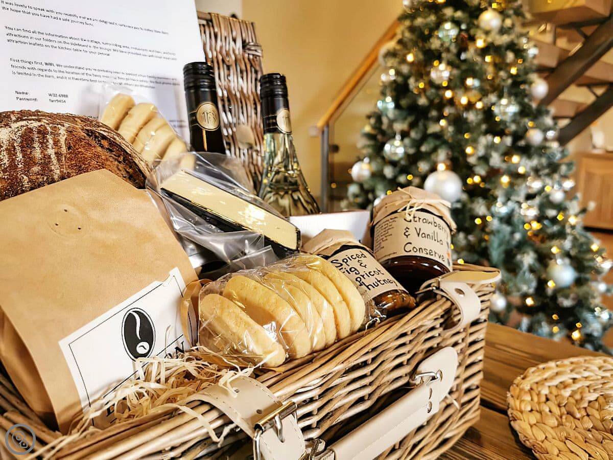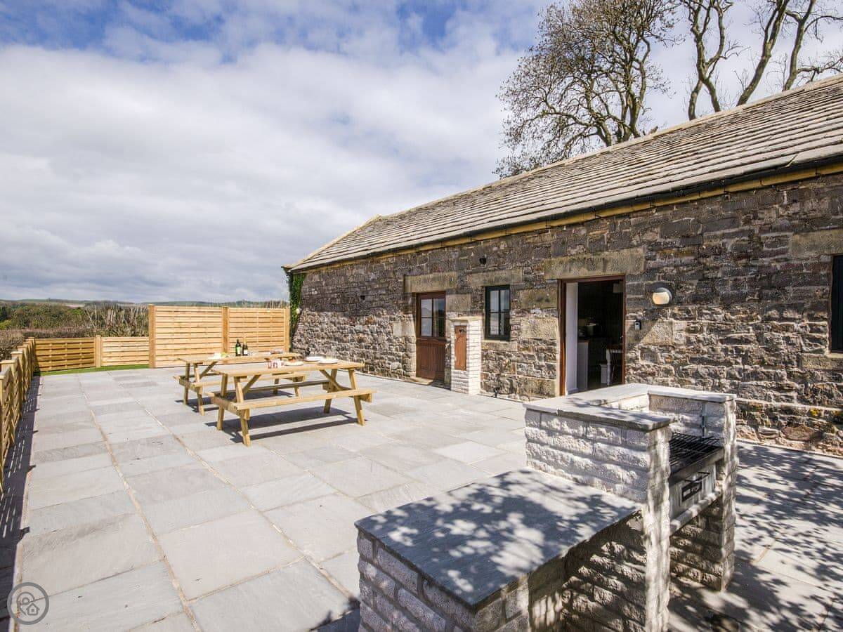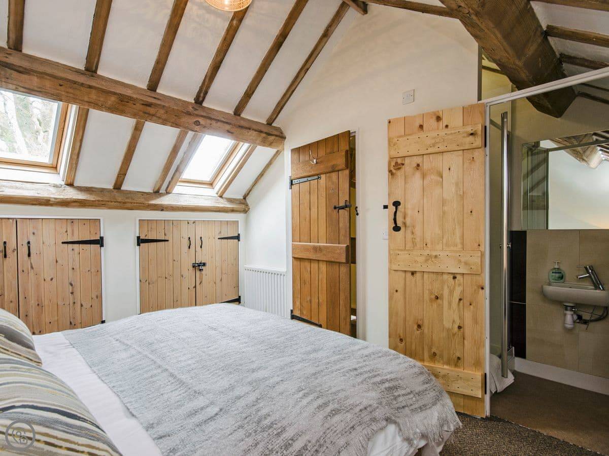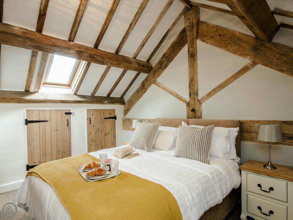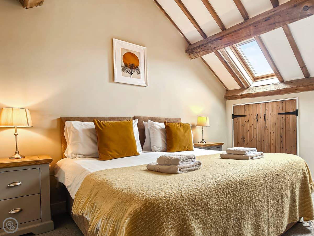 It sleeps up to 14 people. There are seven bedrooms and five bathrooms, so it's a big place. It's got a 4 Star rating. It's a converted barn, so you get the oak beams and stone walls. The main living area is open-plan.