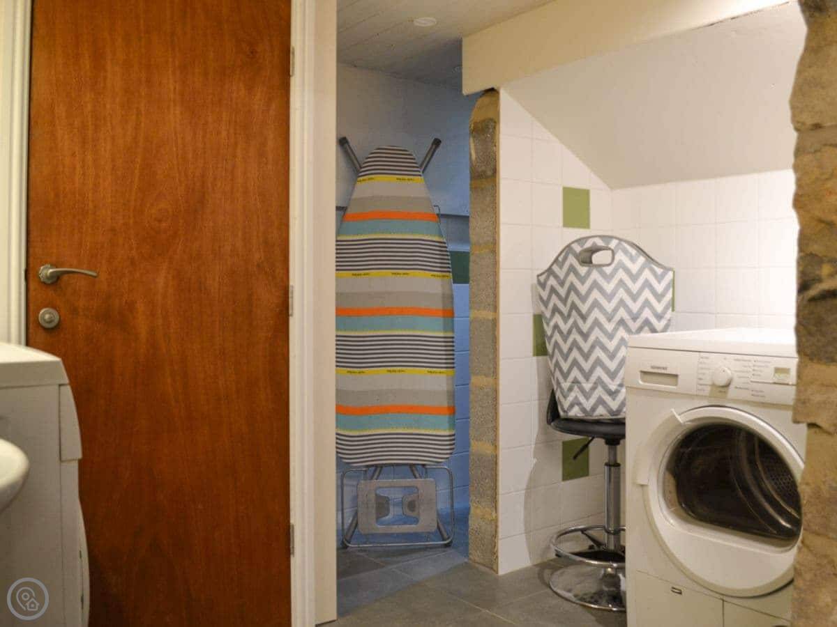 The main living area is all open-plan. It's been done up nicely. The kitchen's in there too. There's a washing machine, TV, and the WiFi usually works fine. Bedding and towels are included.