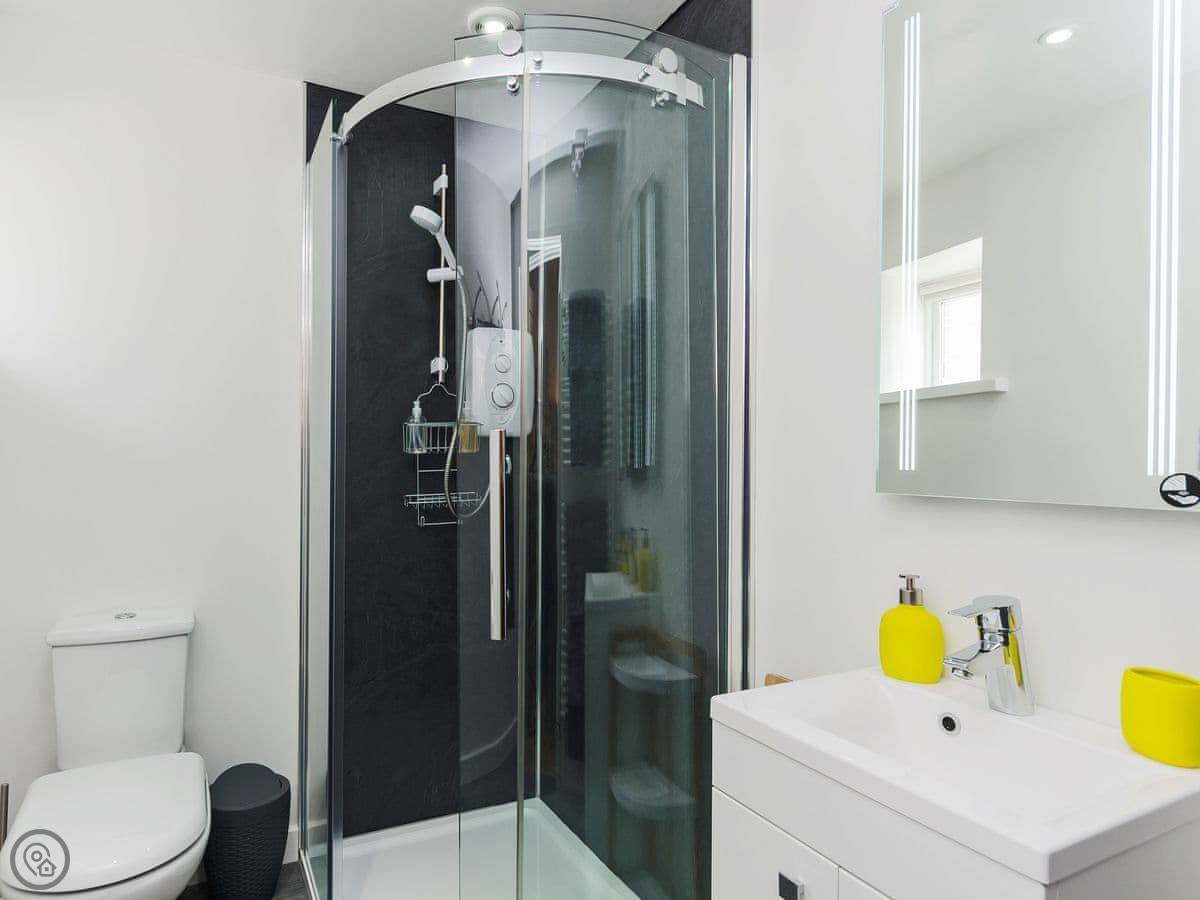 It's for two people. One bedroom with an en-suite shower room, all on the ground floor. The living area is open plan with the kitchen. We've got a 5 Star rating. It's comfortable and well kept.