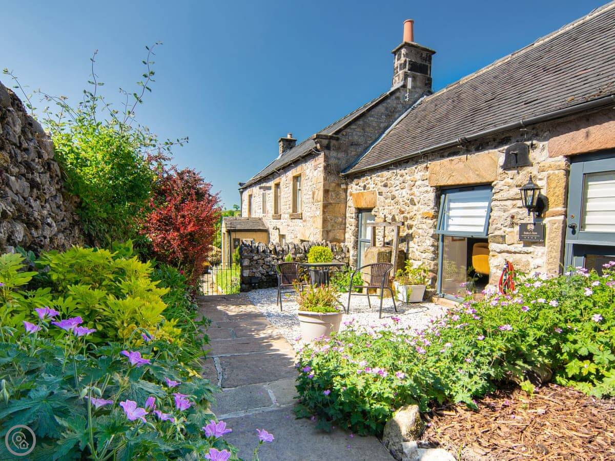 Outside, there's a courtyard garden and a second garden with the views. The garden is enclosed. Parking is off-road, right by the barn.
