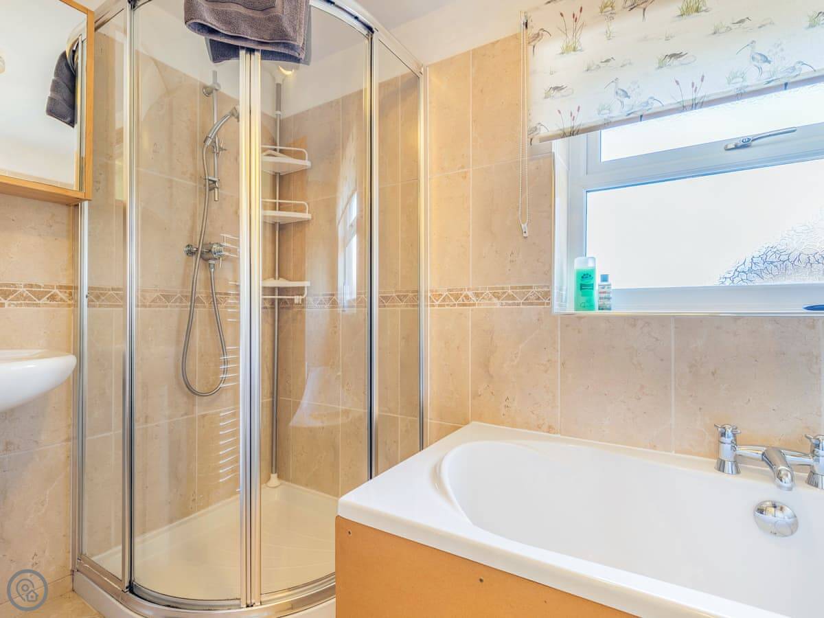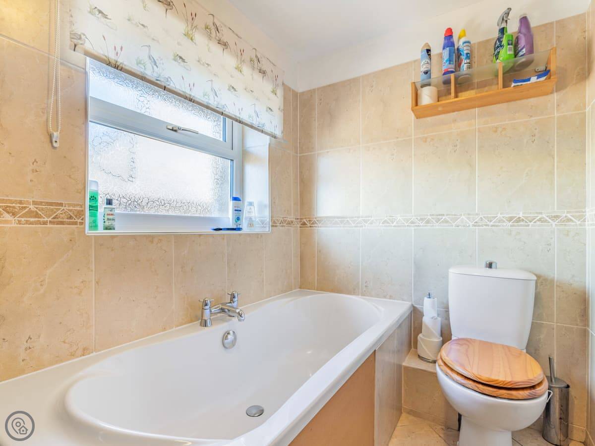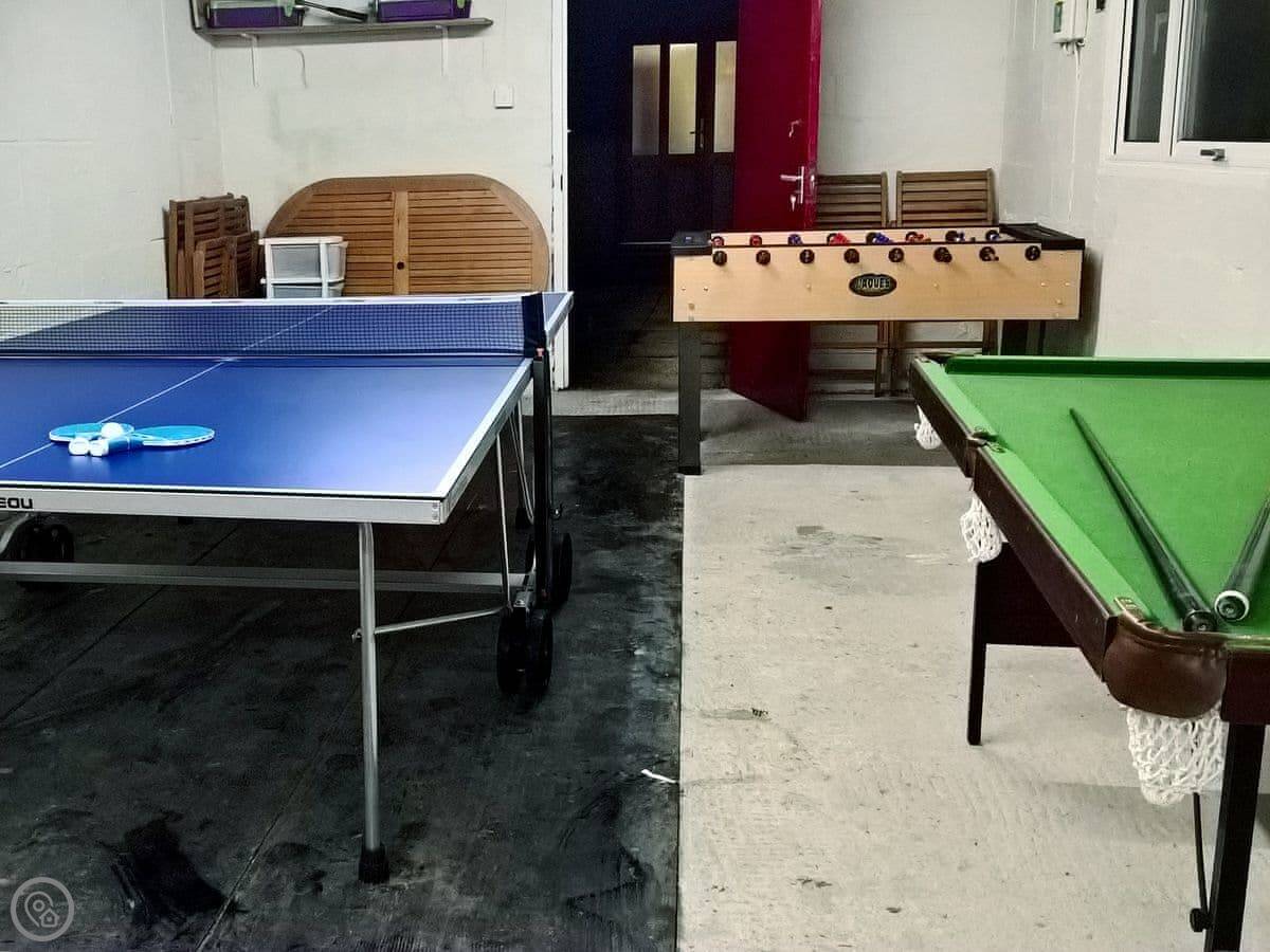 Out the back, there's a separate games room with a pool table and table tennis. The garden is enclosed, which is good if you have dogs. You can walk straight from the garden into the meadow.