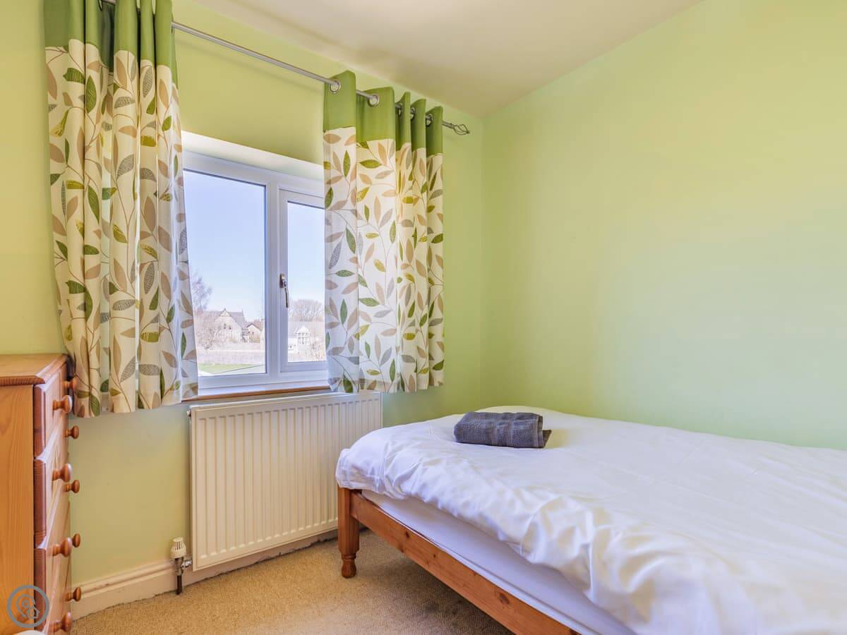 It sleeps five. Three bedrooms, one bathroom. It's got a 3 Star rating, so it's comfortable and clean. There's a wood burner in the living room that works well. The stairs are a bit steep, like a lot of cottages.