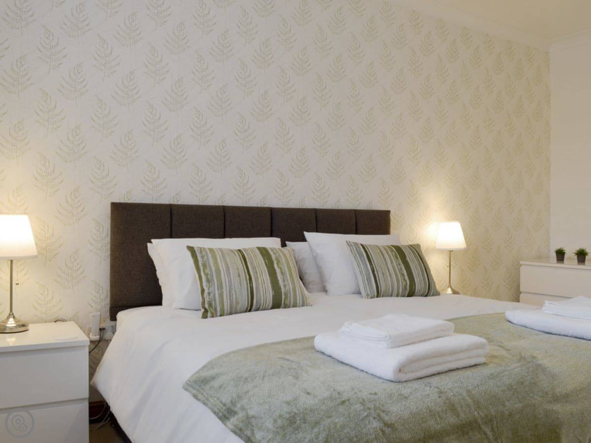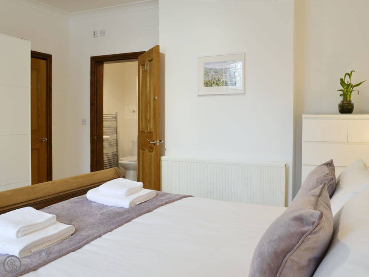 It sleeps four. Two bedrooms, both with en-suite showers. The beds are super kingsize. It's got a 4 Star rating. It's comfortable and recently done up. Everything's clean and works properly.