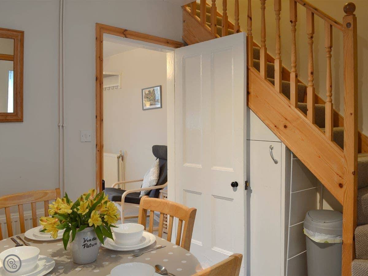The stairs are steep, which is normal for these cottages. There’s a washing machine, a dishwasher, and the bedding and towels are included. WiFi works fine. No pets allowed.