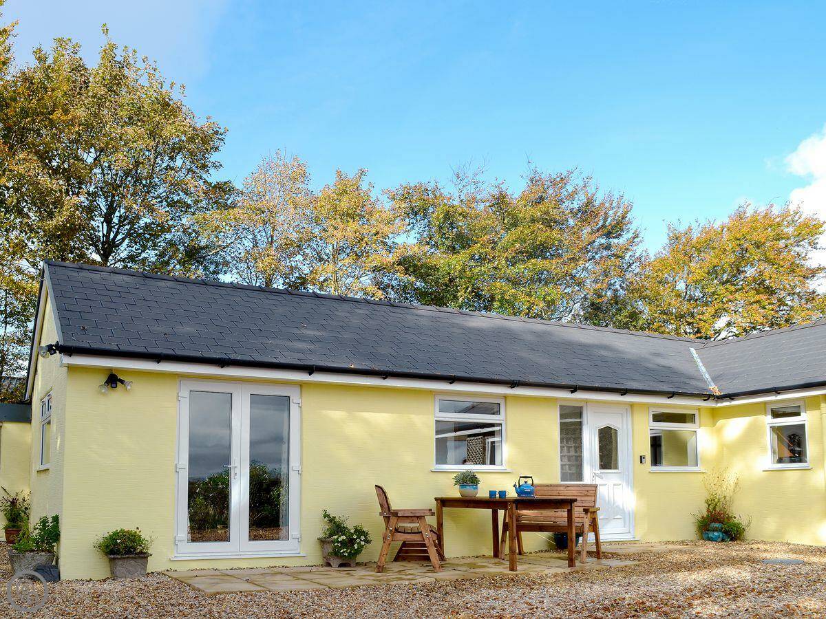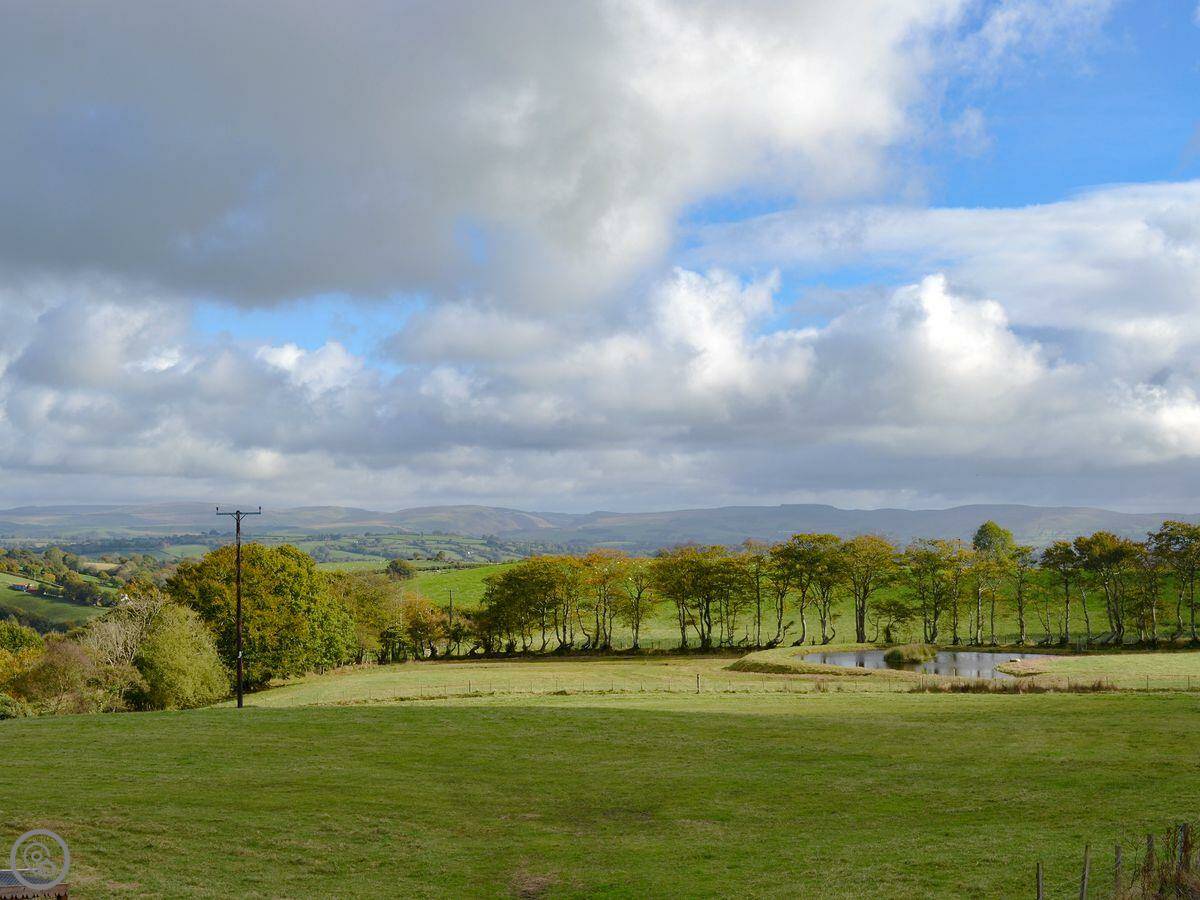 This is Dildre. It's one of two cottages attached to our house here at Brynllin. We're on a sheep farm in Bwlch Llan, which is quiet and rural. The views are over the fields and hills.