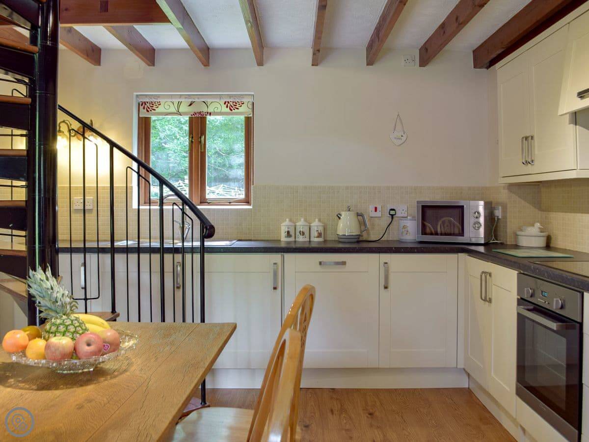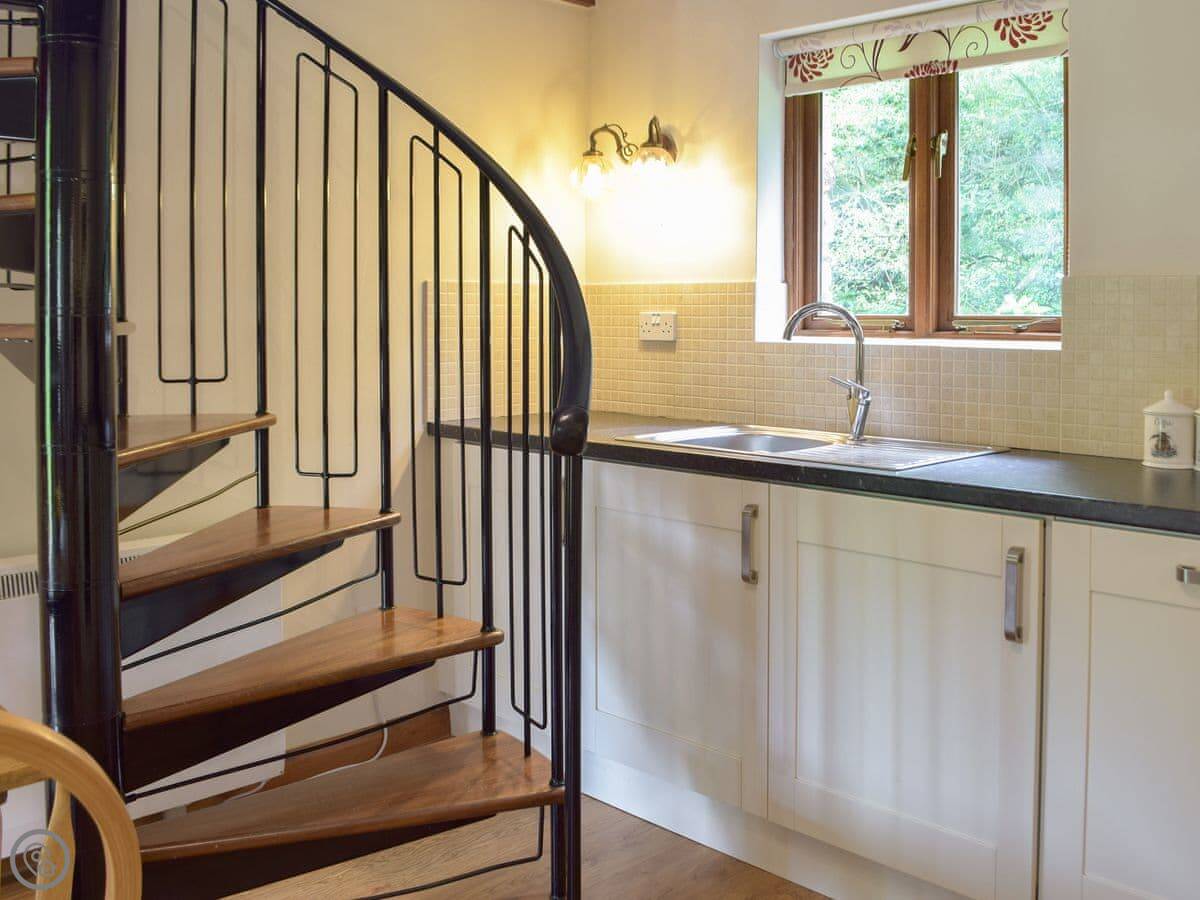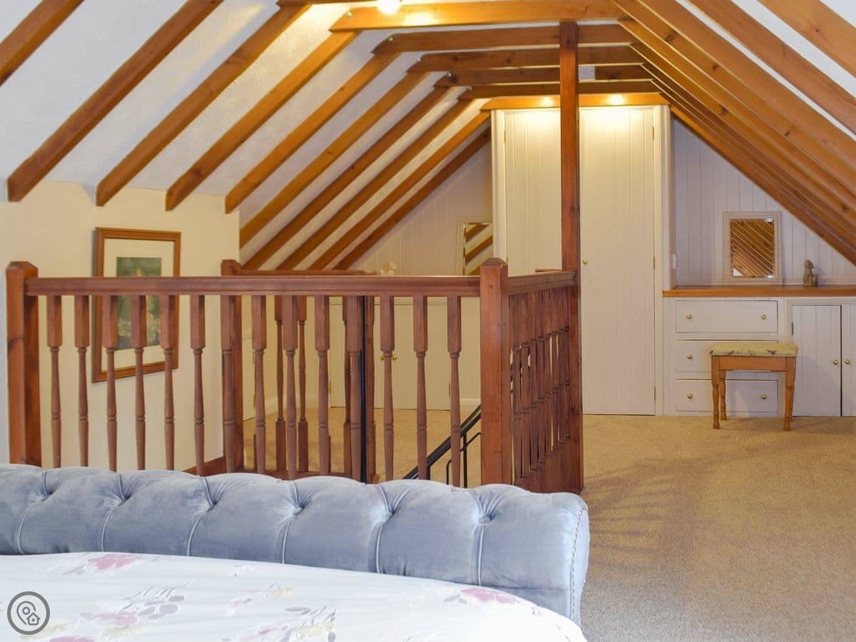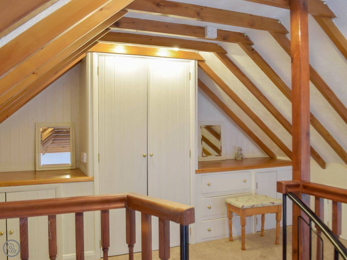 The cottage sleeps four, in two bedrooms. There's one bathroom. It's got a 4 Star rating. It's comfortable, but it's a cottage. The stairs are the main thing: they're spiral, and they're steep. They go up to the main bedroom.