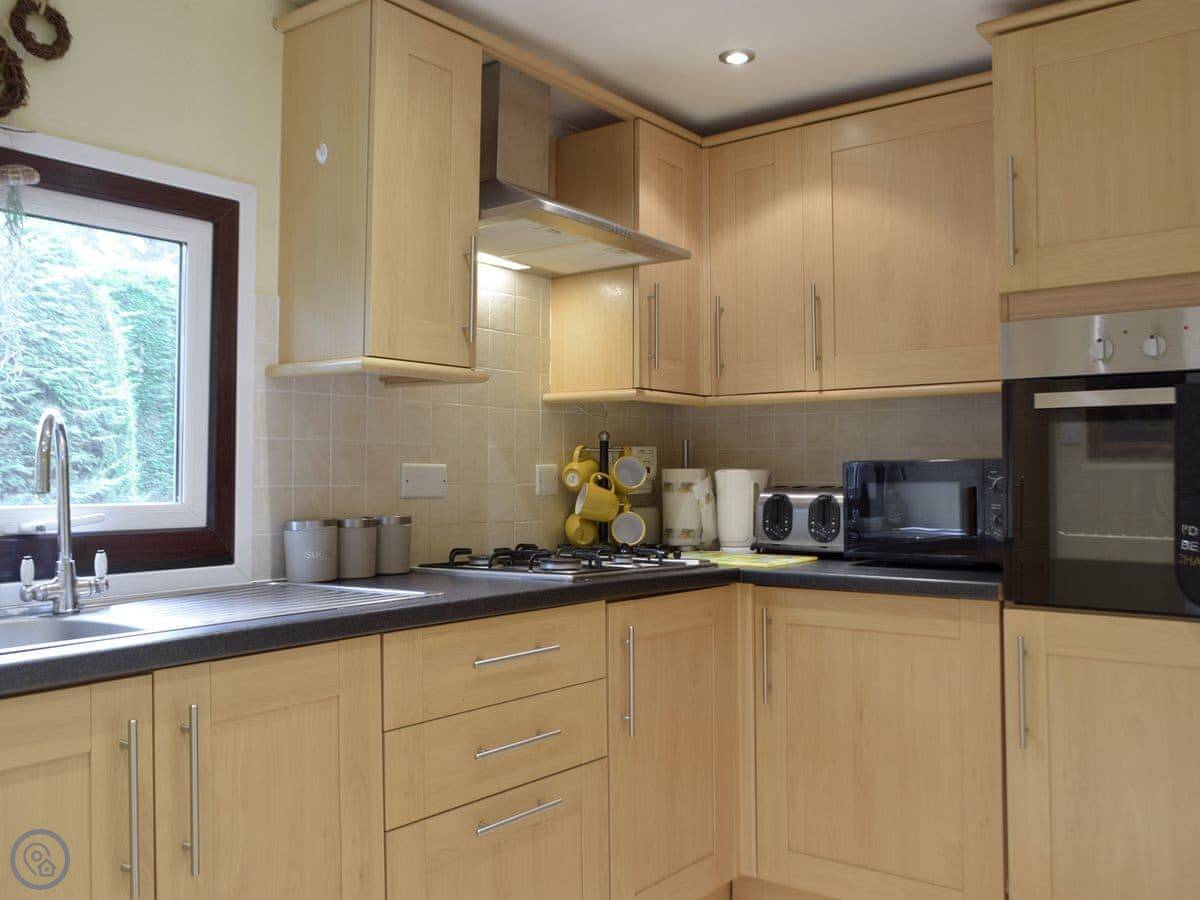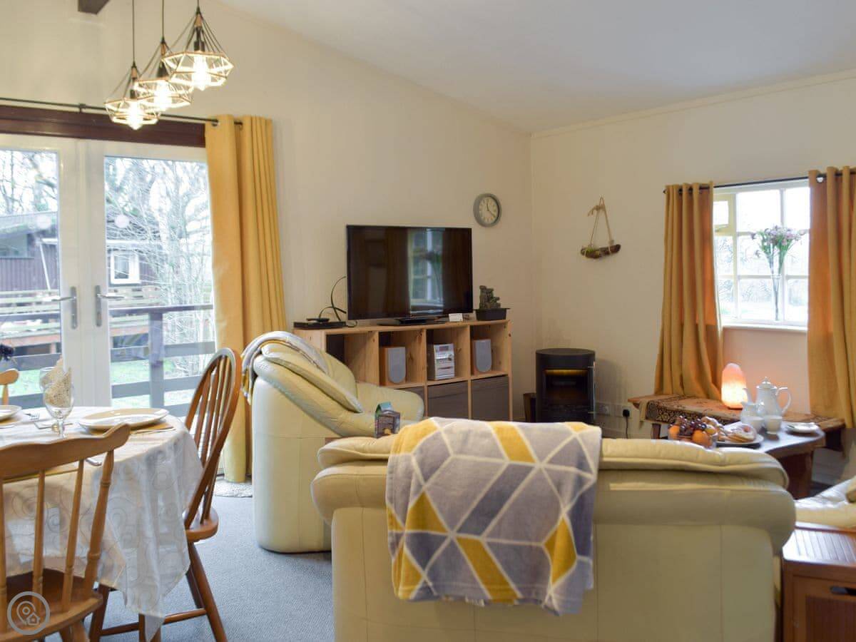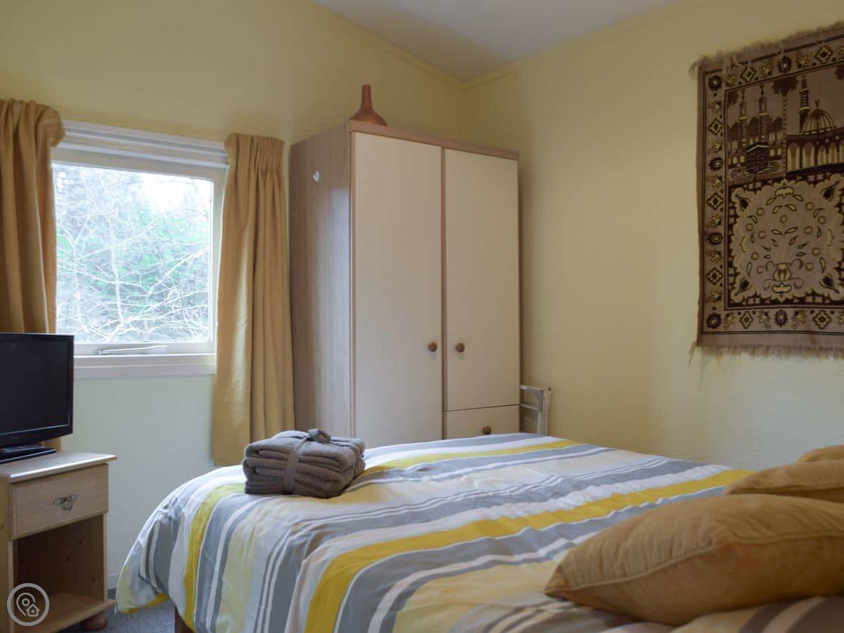 Facilities include a TV, washing machine, and WiFi. Bedding and towels are included. There's a cot and a highchair if you need them. You can bring up to two dogs. The lodge next door, Twit Too Woo, can be booked together with this one for bigger groups.