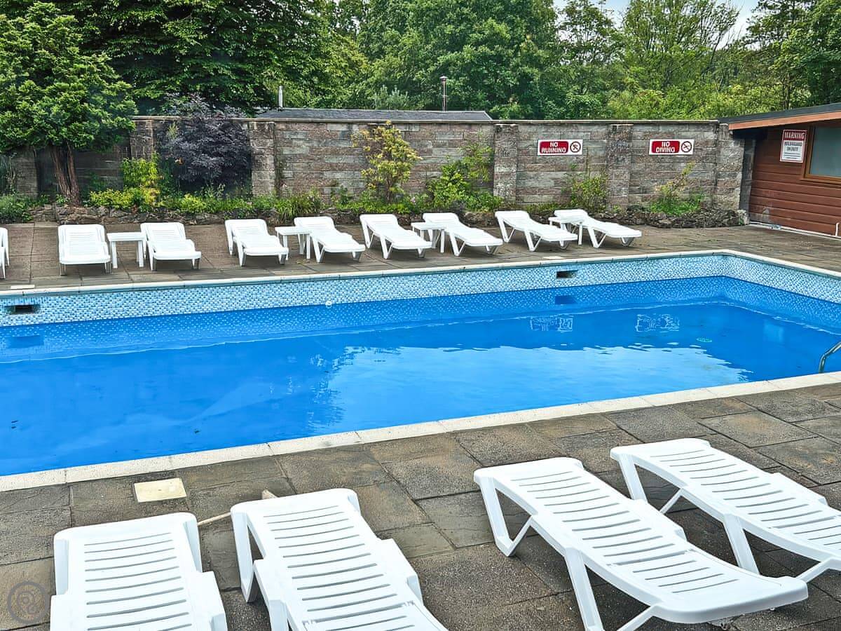 On the park, there's a heated outdoor pool open in the summer, a kids' play area, and a big field. There's also a bar and a games room with pool tables, but it's best to check the current opening times as these things can change. You can park right by the lodge.