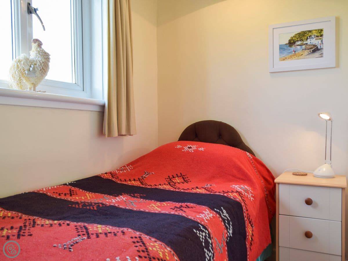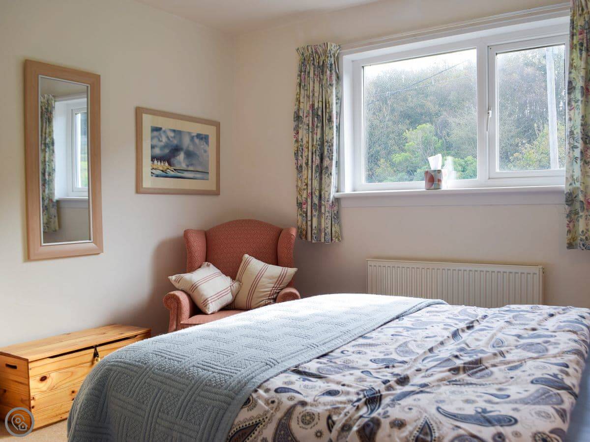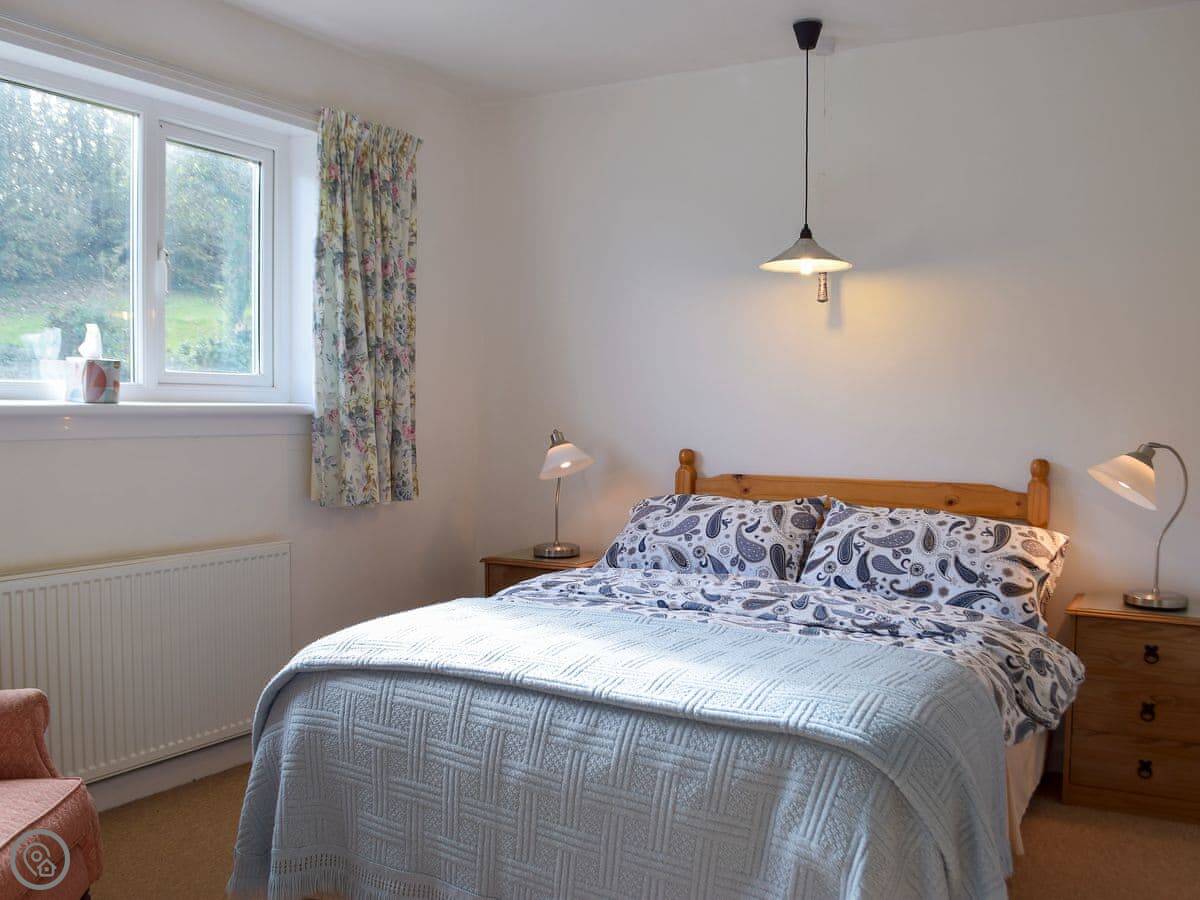 It sleeps five. Three bedrooms, one bathroom. It's got a 4 Star grading. There's an open fire and a south-facing patio at the back. The house is all on one level, so the entrances are wheelchair friendly.