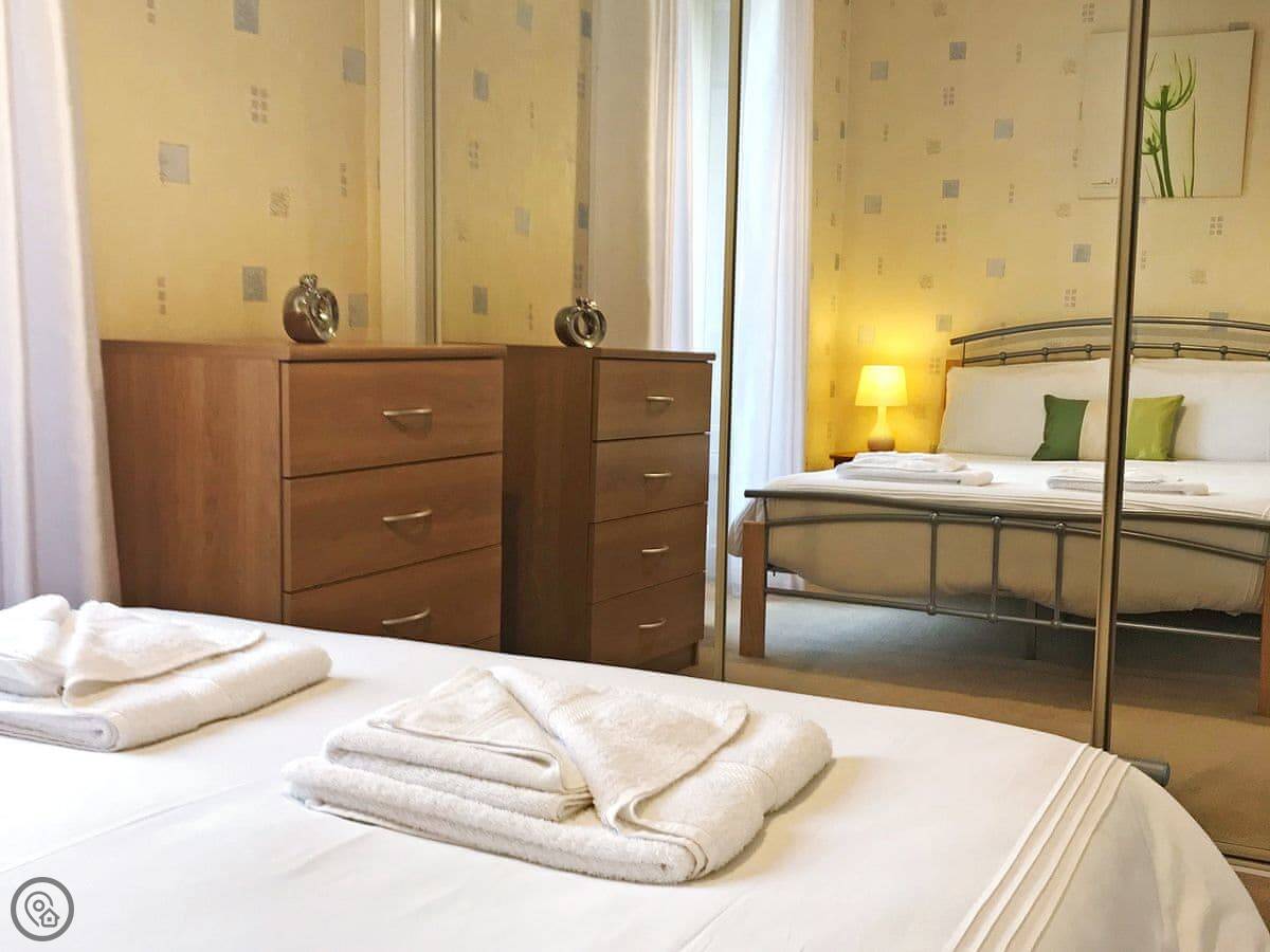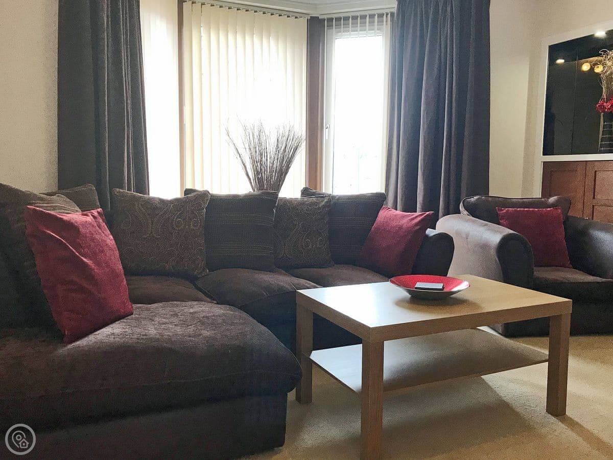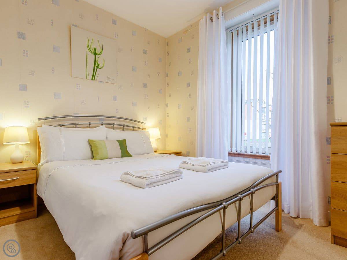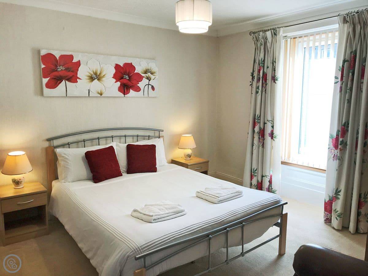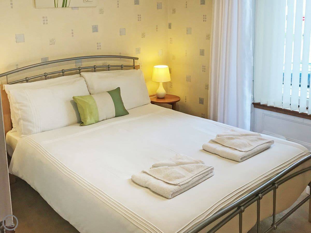 It sleeps five. Three bedrooms – a kingsize, a double, and a single – and one bathroom. The bathroom is a good size. The rating is 4 Star, so it’s comfortable.