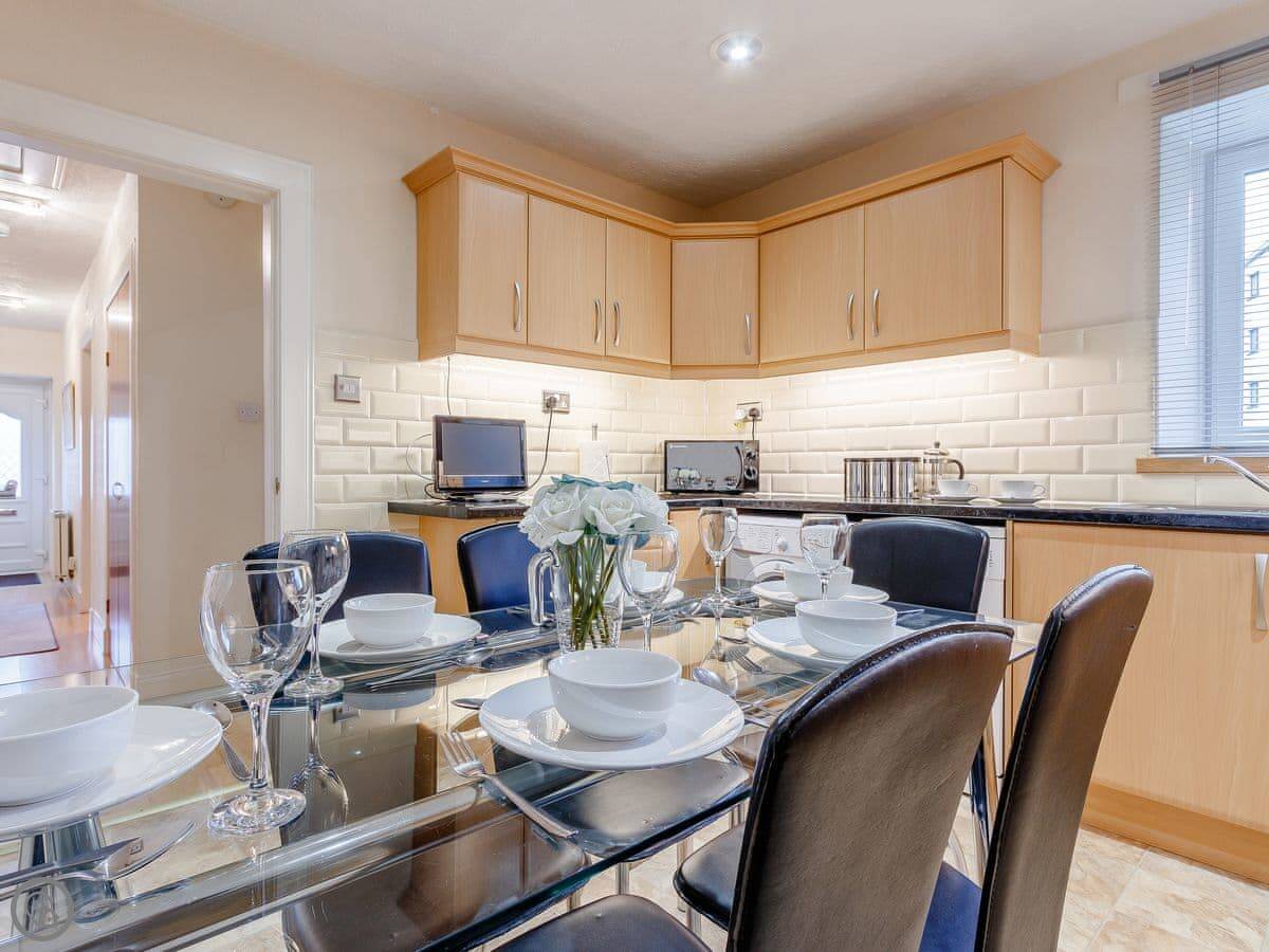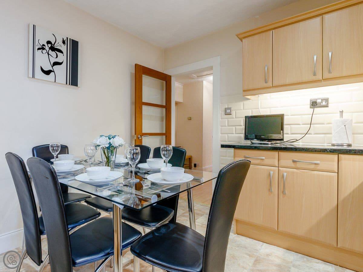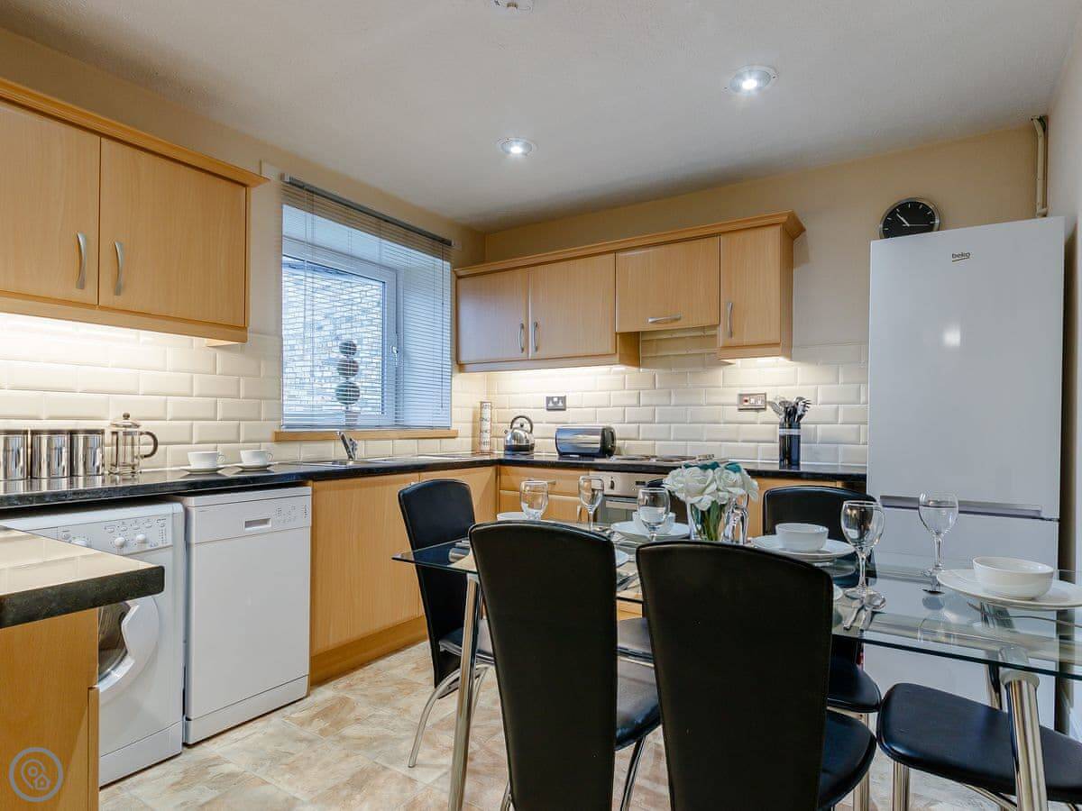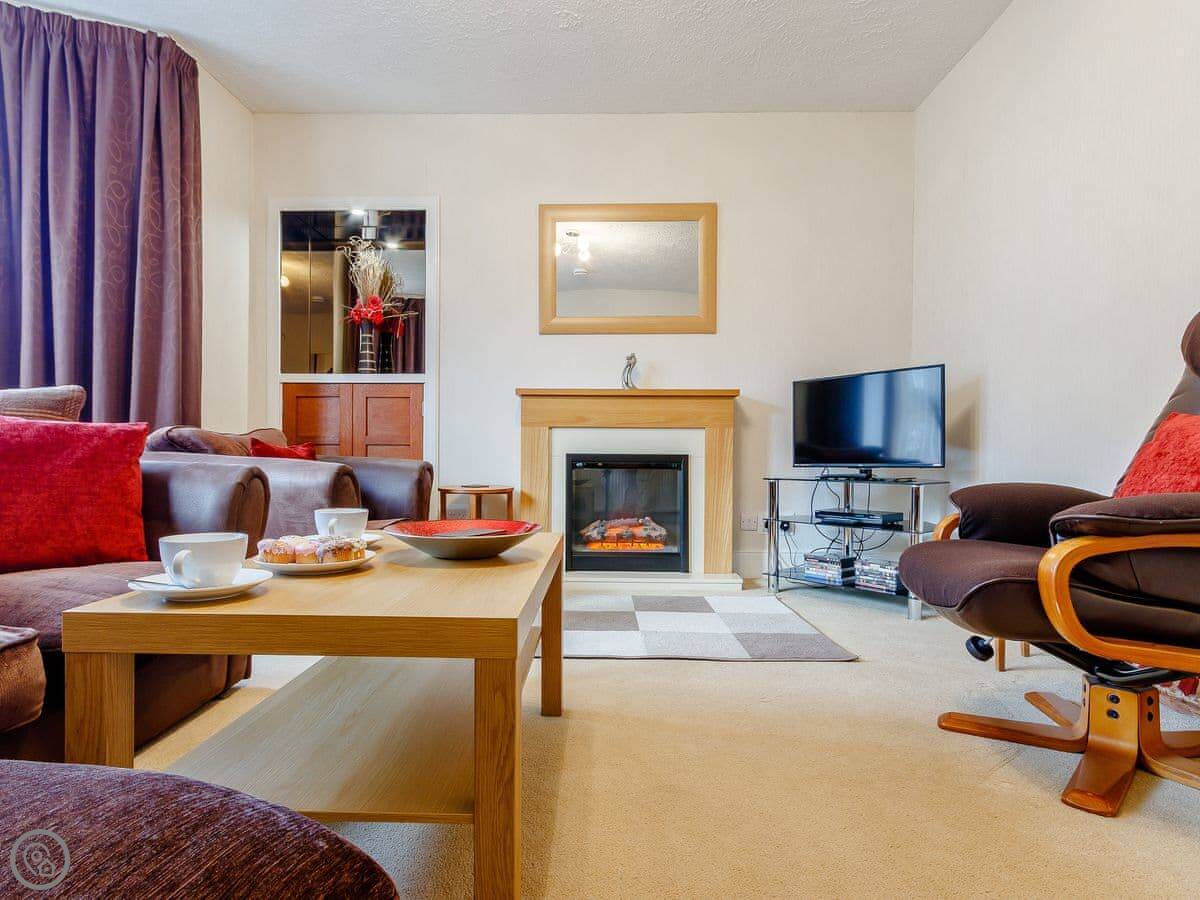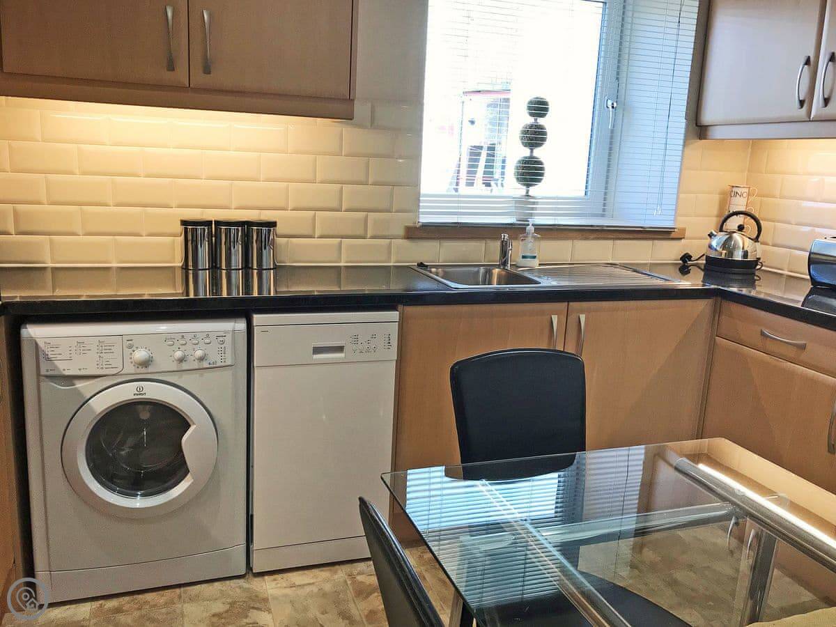 Inside, it's got what you need. There's a washing machine, dishwasher, WiFi, and TV. Bedding and towels are included. We can provide a cot and highchair. It's not a single cottage, there are other properties here, but you have your own front door and garden.