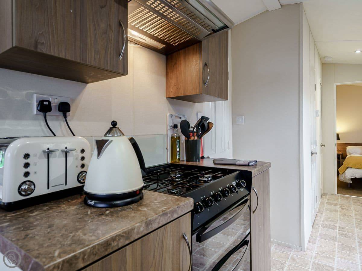 It's open plan inside, with French doors that open onto your own private deck. The kitchen has what you need. There's a washing machine, towels and bedding are provided, and you can park right outside. We allow up to two well-behaved dogs.