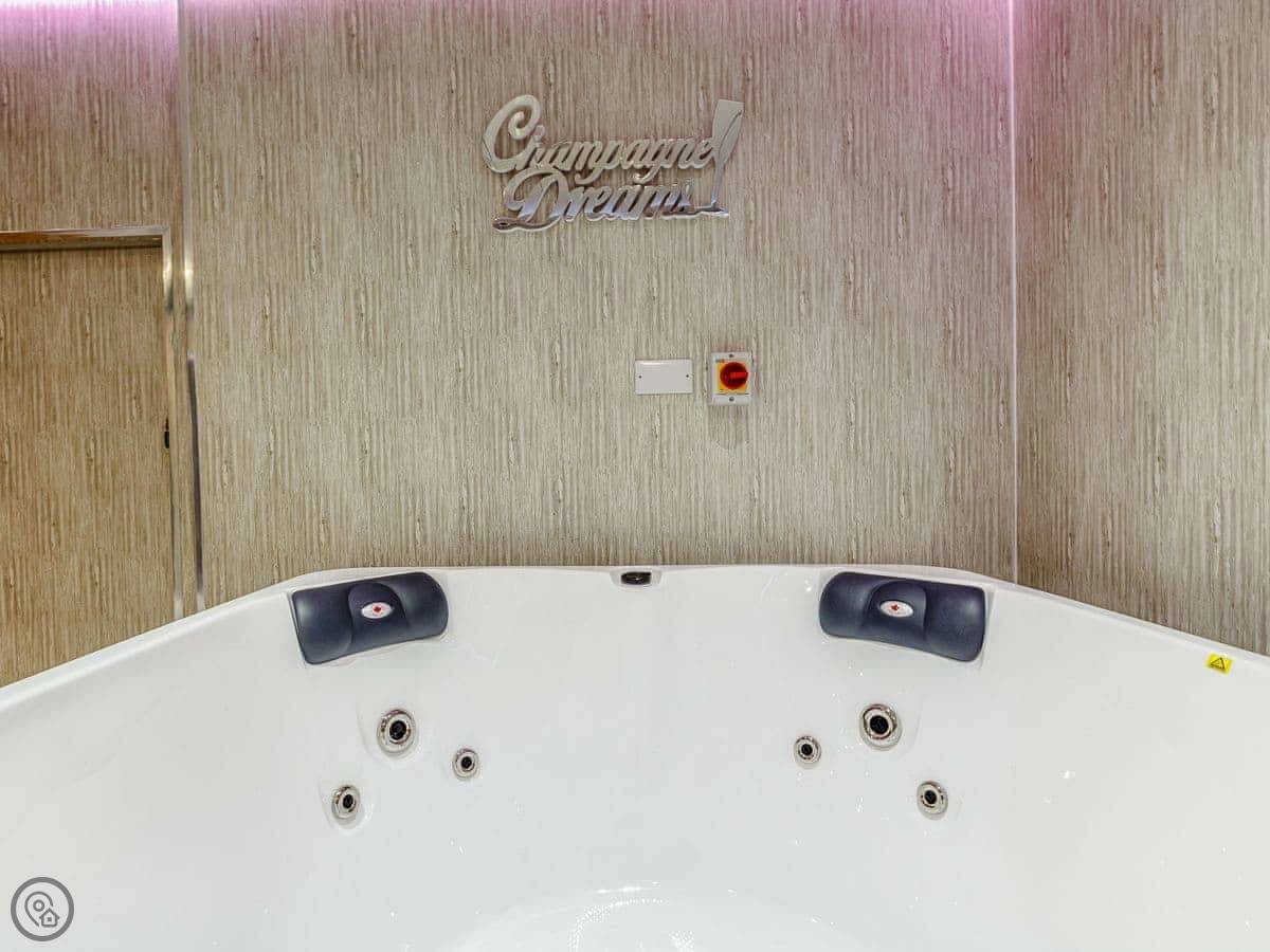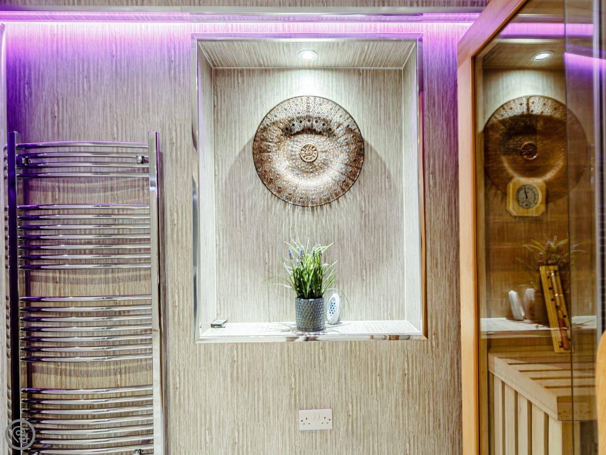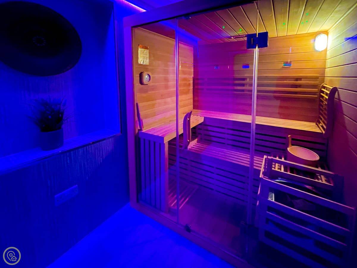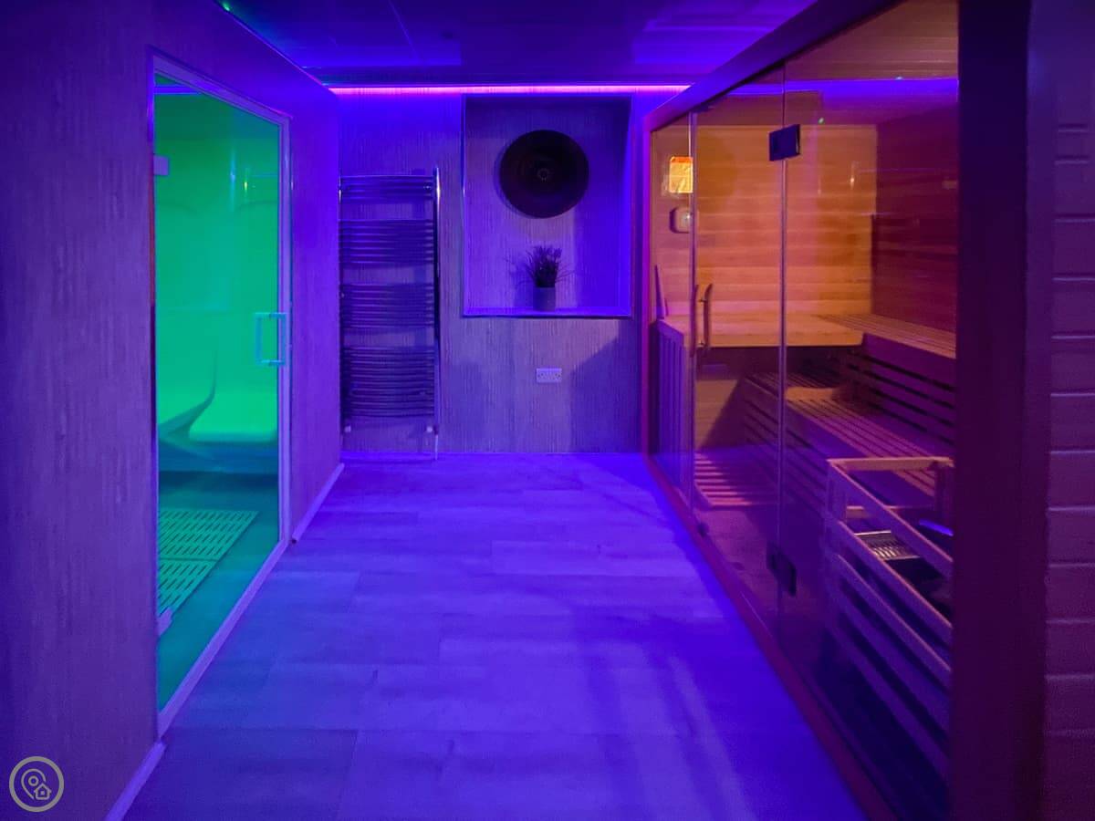 The main thing here is the spa. It's yours, private. It has a hot tub, a sauna, and a steam room. Robes are provided. You also get an 85-minute treatment each in the on-site treatment room, which is just next to the suite. There's a selection of ESPA products to use while you're staying.