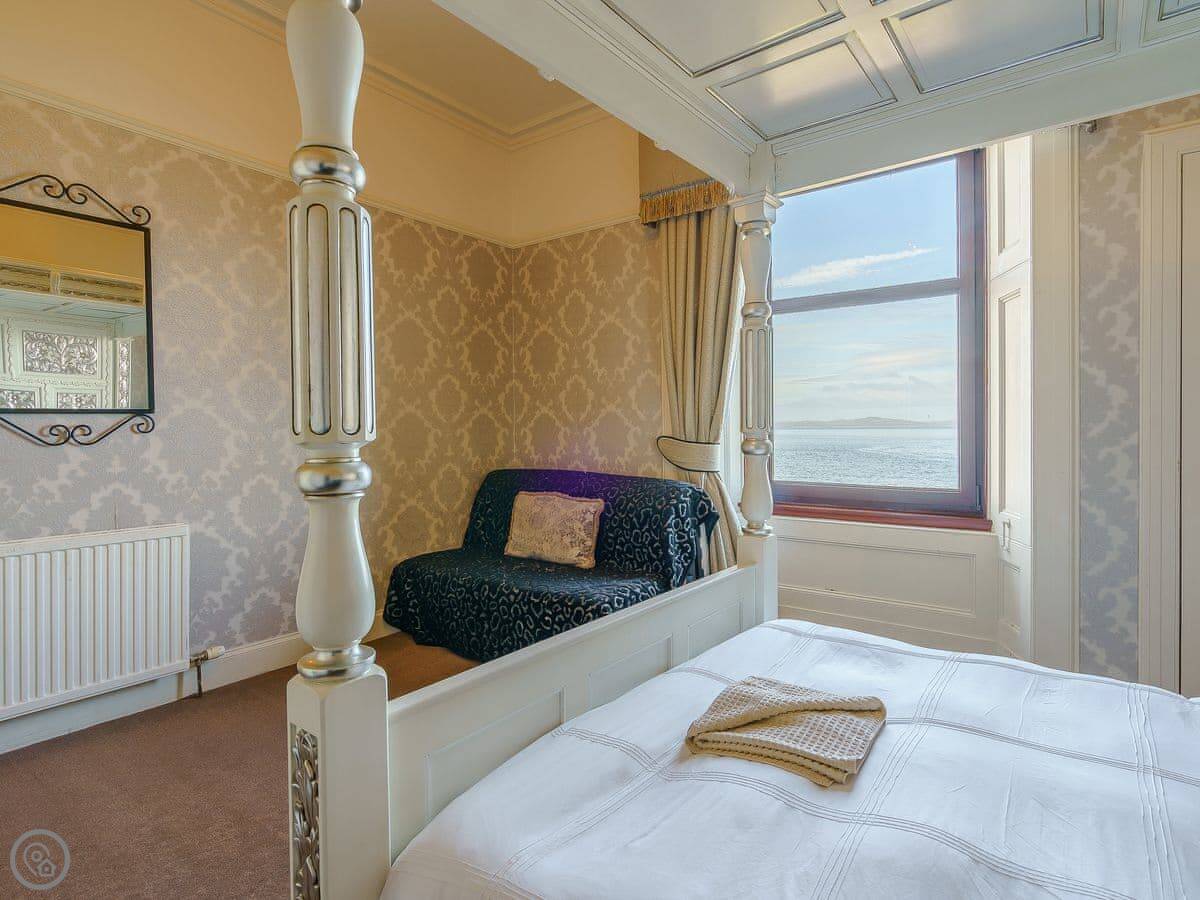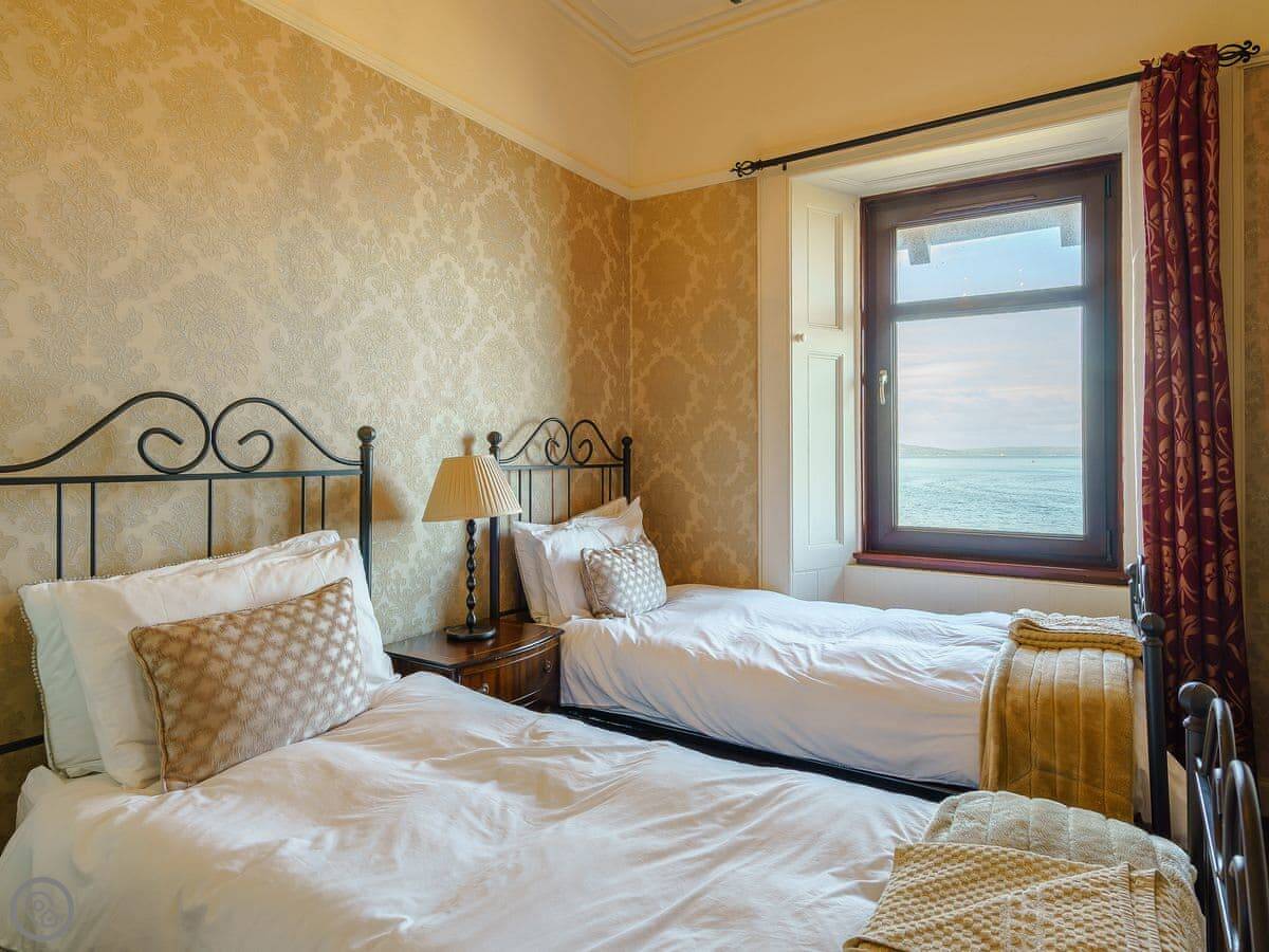 The Old Nunnery is in Skelmorlie, right on the water's edge. It's a semi-detached property, part of an old converted nunnery. It sleeps up to 24 people, which sounds like a lot because it is. There are nine bedrooms and five bathrooms.