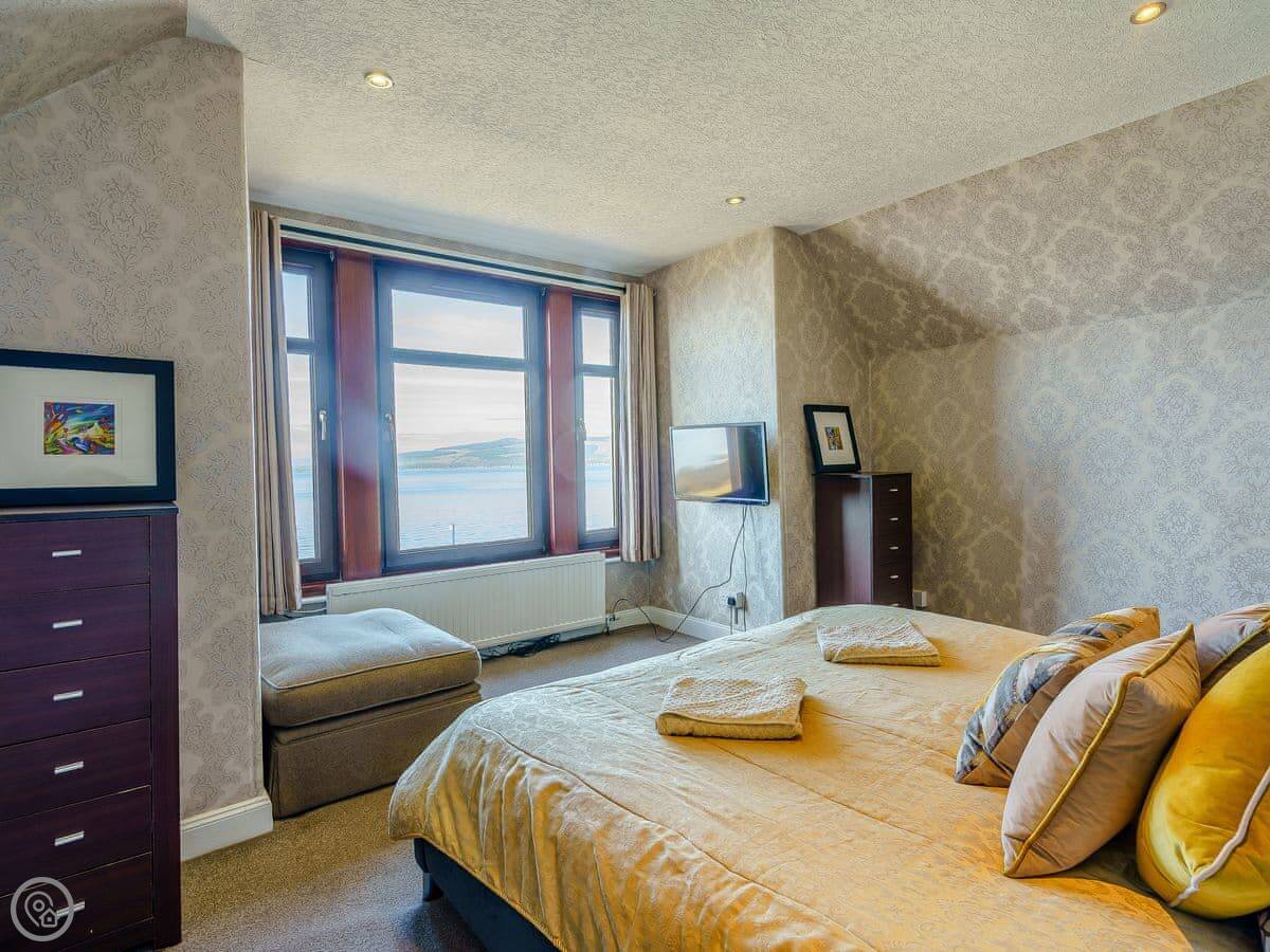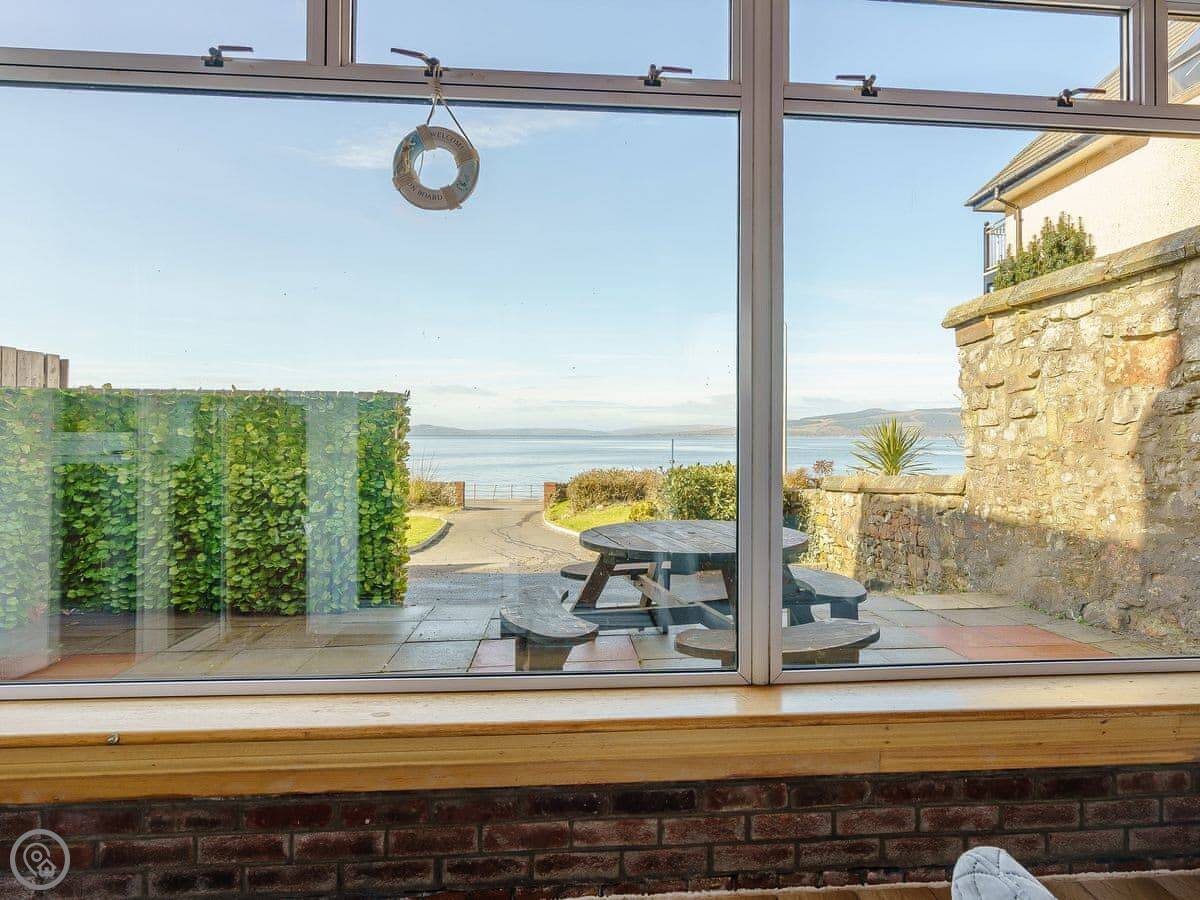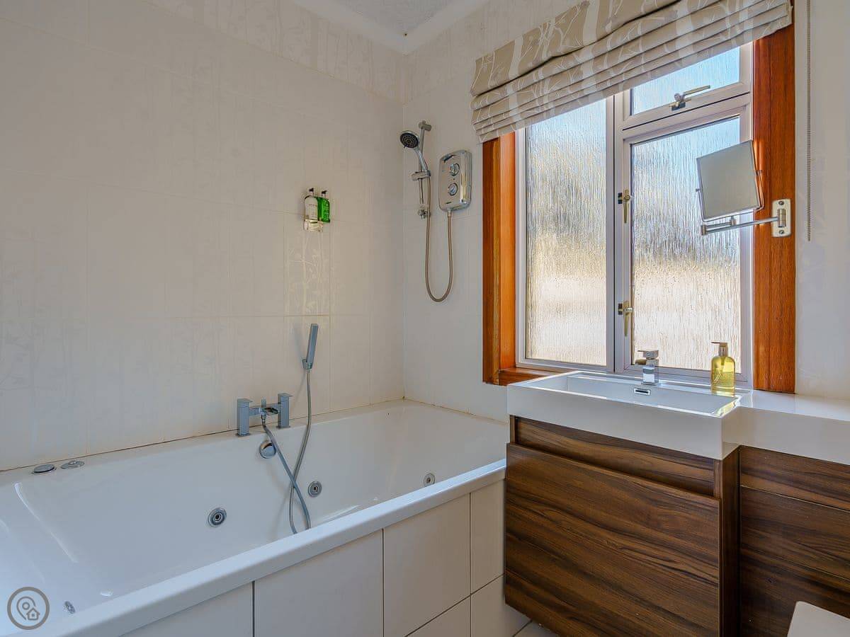 There are fantastic views out over the Firth of Clyde from the front of the house. You can walk to the shore in a couple of minutes. There’s a patio and garden at the back. The hot tub fits six people.