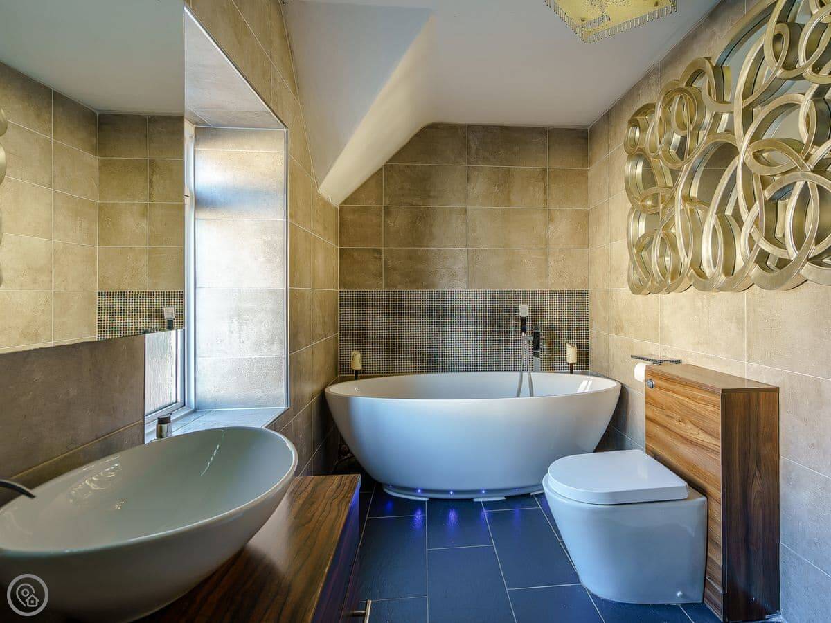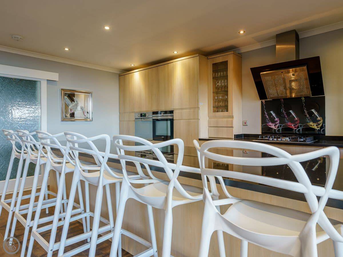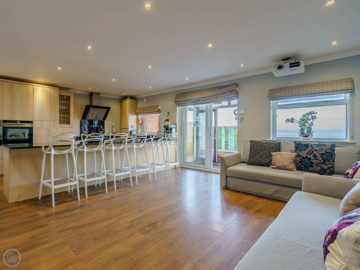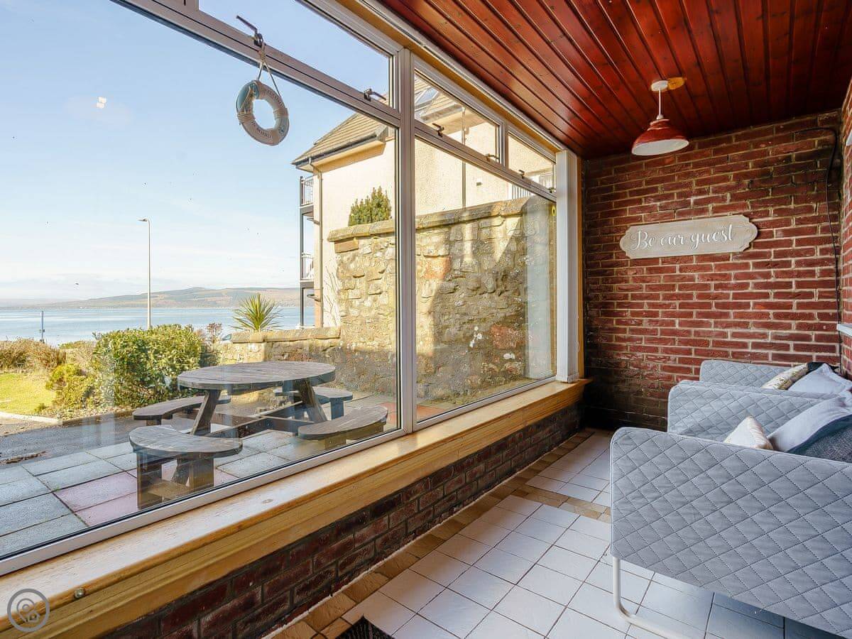 There are fantastic views out over the Firth of Clyde from the front of the house. You can walk to the shore in a couple of minutes. There’s a patio and garden at the back. The hot tub fits six people.