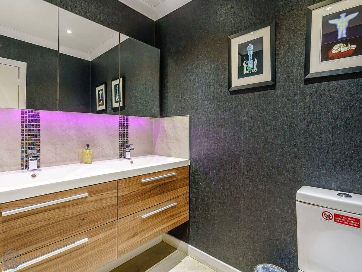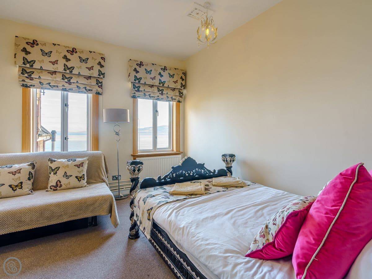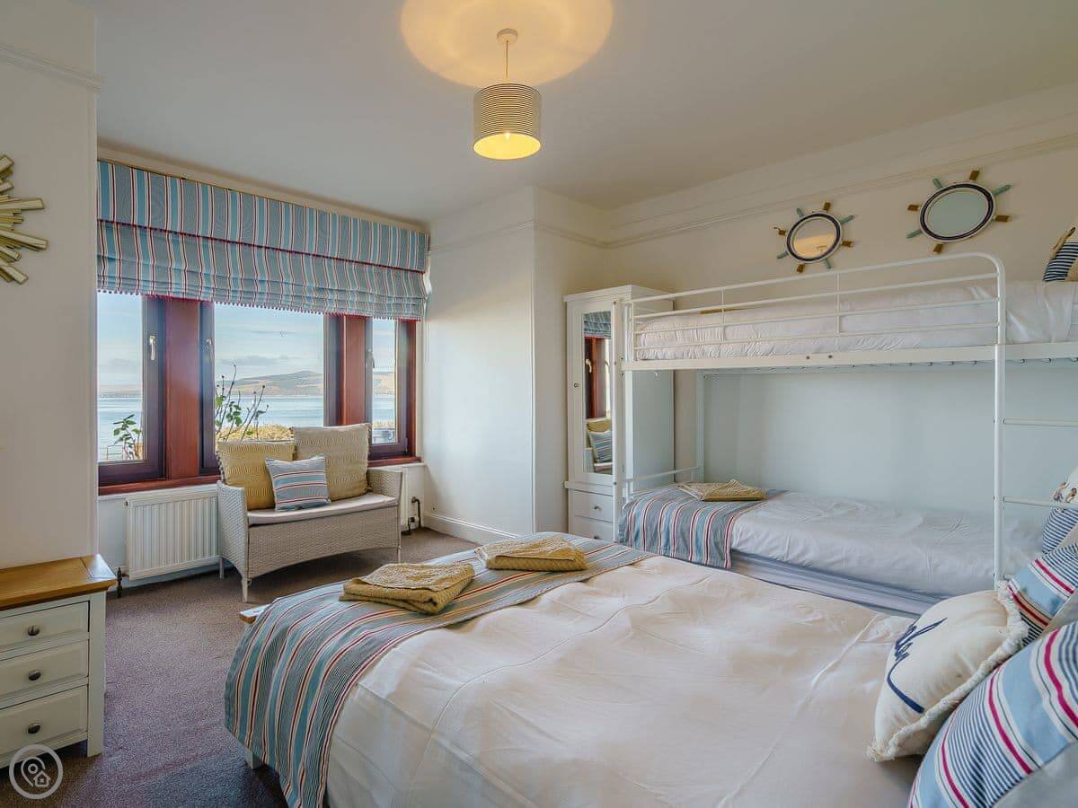 The Wee Nunnery is in Skelmorlie, right on the coast. It’s a semi-detached house, attached to The Old Nunnery next door. The place sleeps fourteen, in five bedrooms. There's three bathrooms.