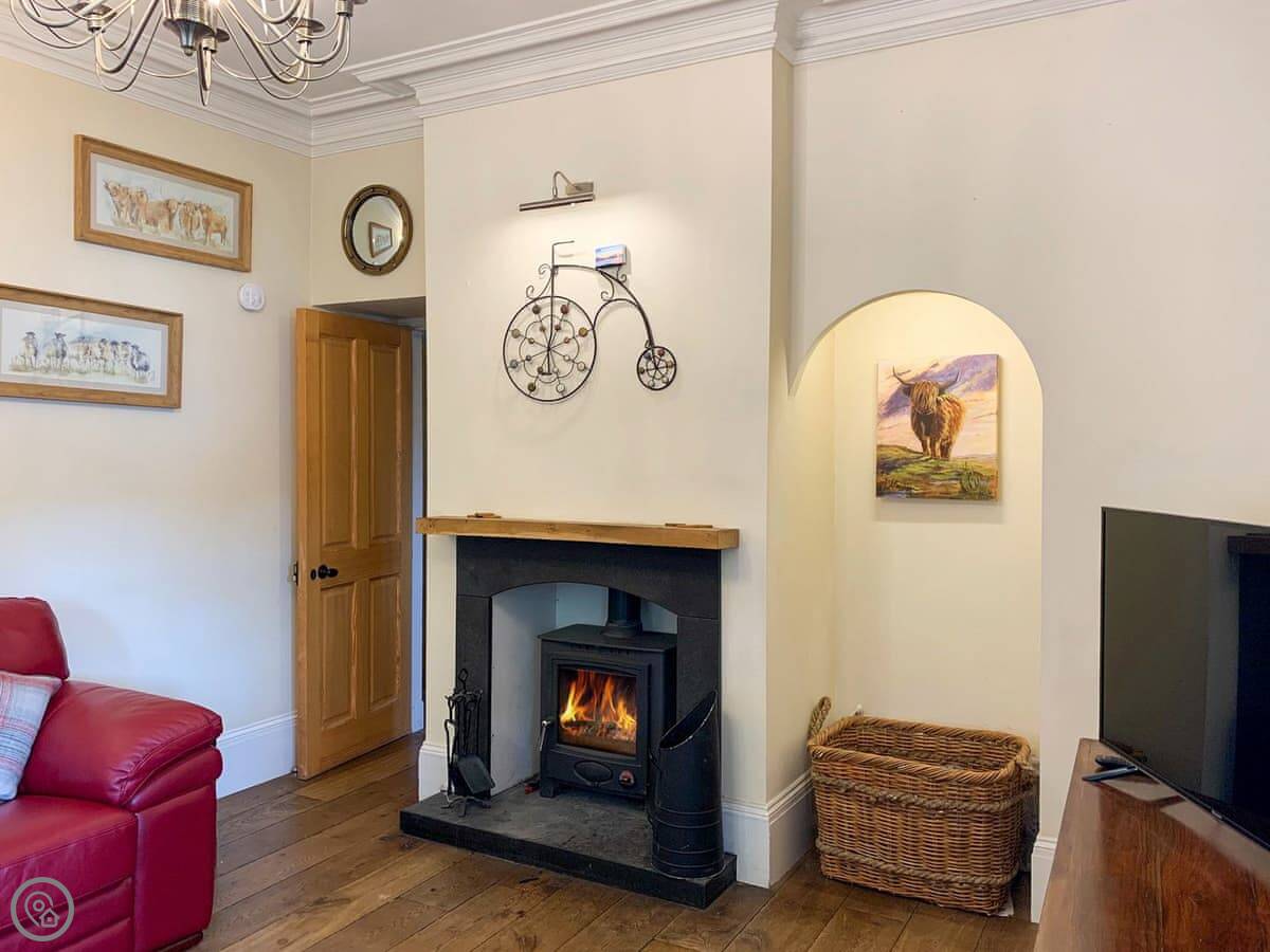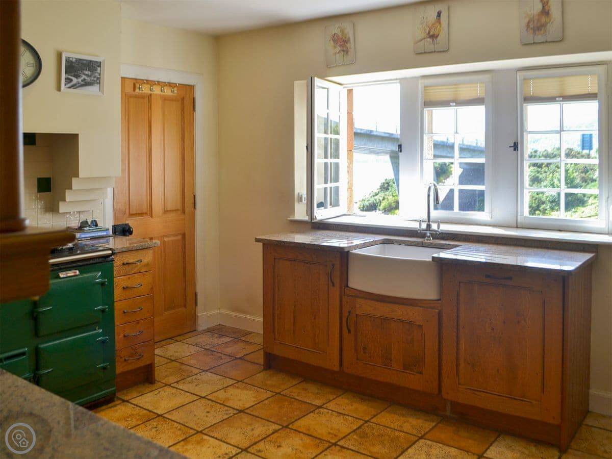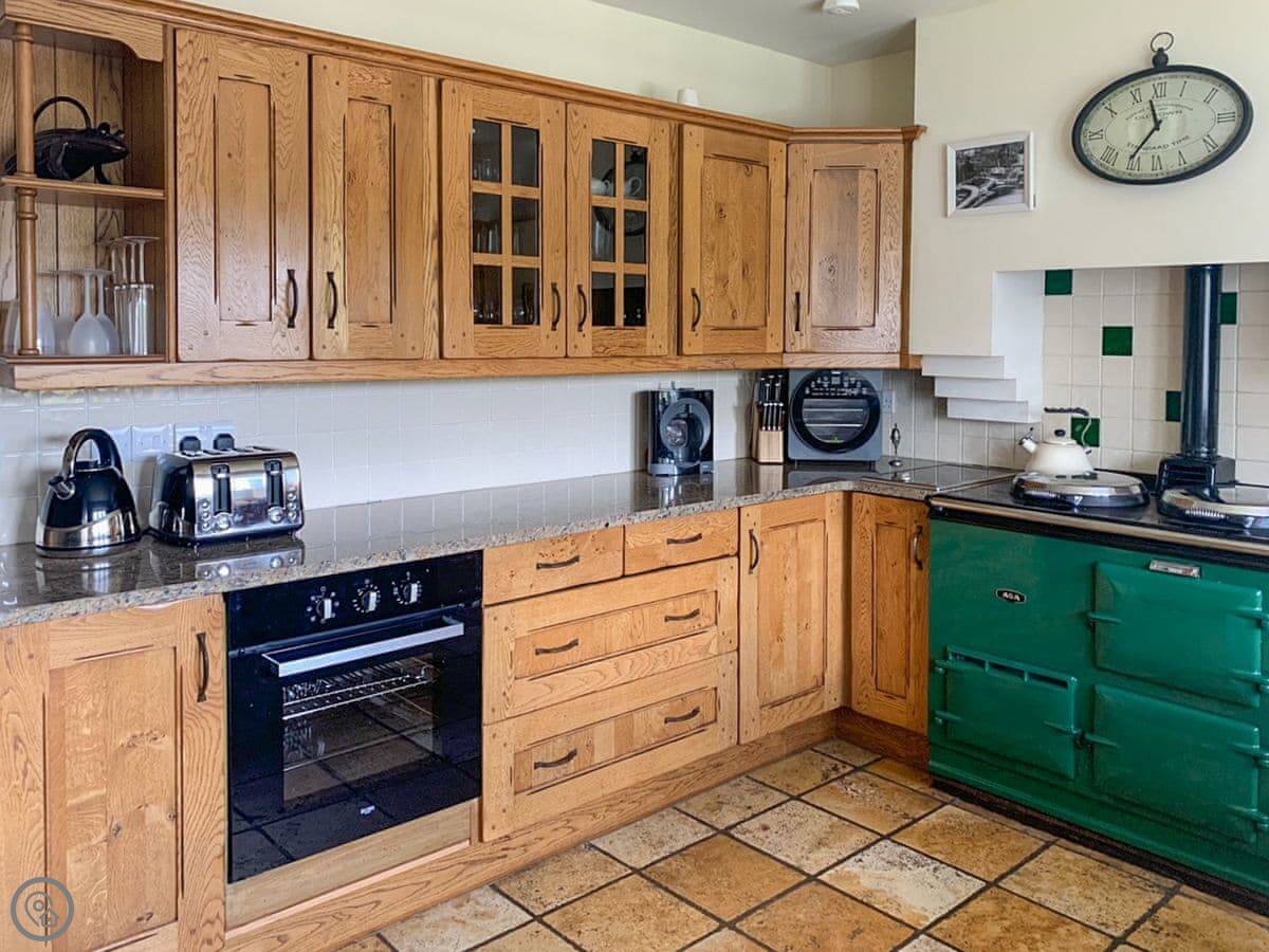 The kitchen has an Aga. It's an oil-fired one, so it keeps the place warm. The windows are old and a bit draughty in a strong wind, but that's part of it. There's a wood burner in the lounge. We leave some logs for you to start with.