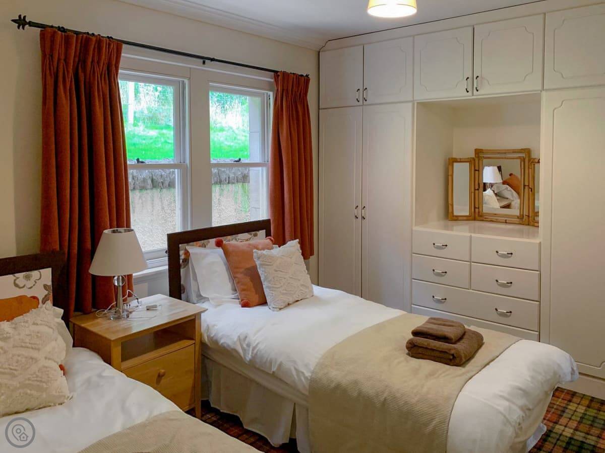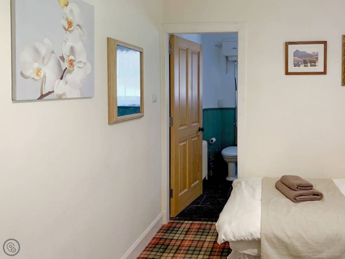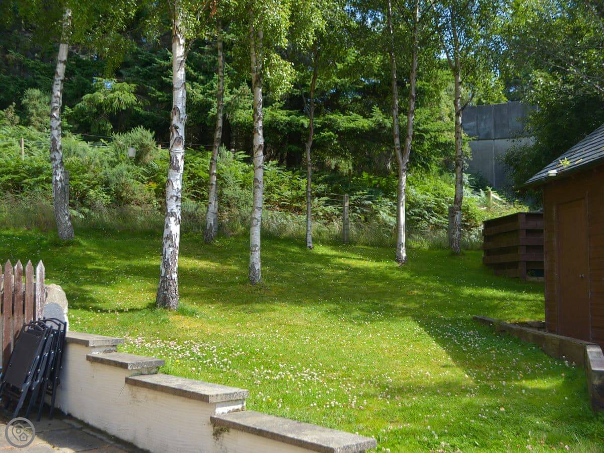 The garden is fully enclosed, so it's fine for a dog. One well-behaved pet is welcome. The lawn goes down to a terrace where you can sit and look at the loch.