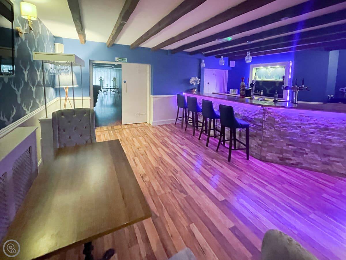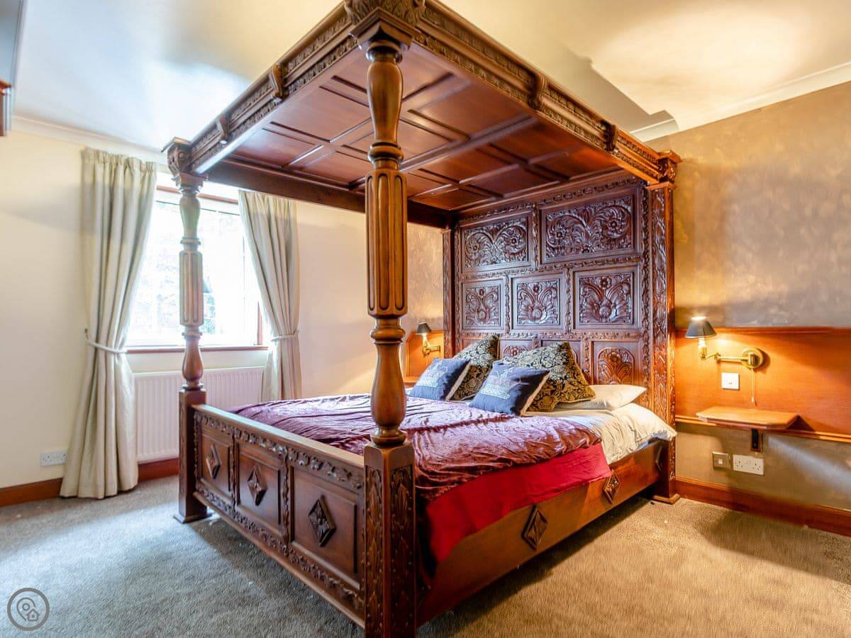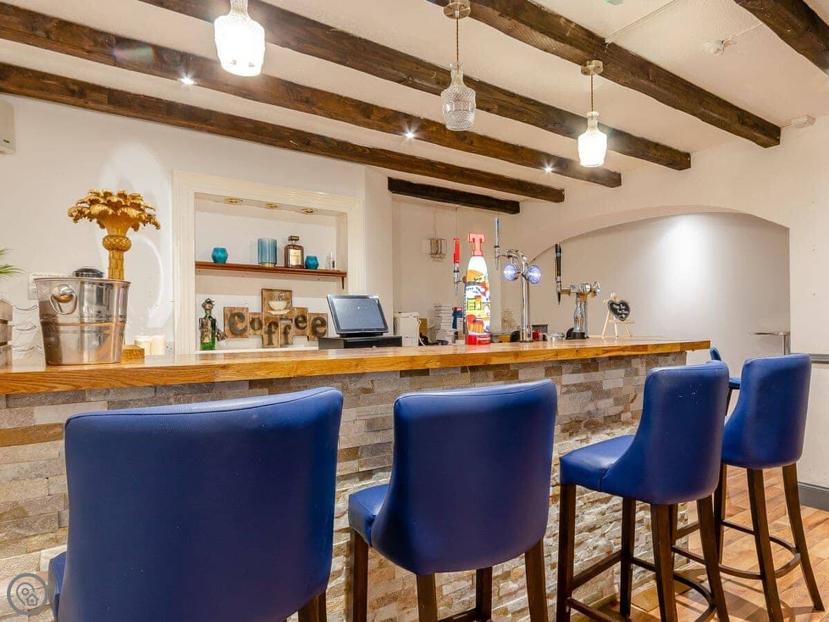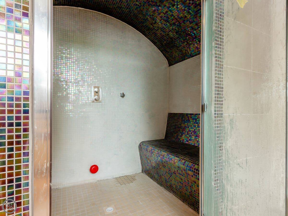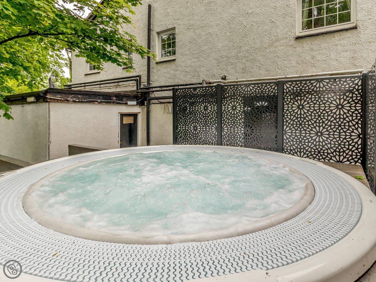 It has nine bedrooms and each one has its own bathroom. It's rated 4 Star. It's set up for parties and gatherings. There's a private bar, a function room, and a games room. The main draw is the spa part: there's an outdoor commercial hot tub that fits ten people, and an indoor thermal suite with a sauna and steam room, just for your group. The hot tub area is fenced off for privacy.