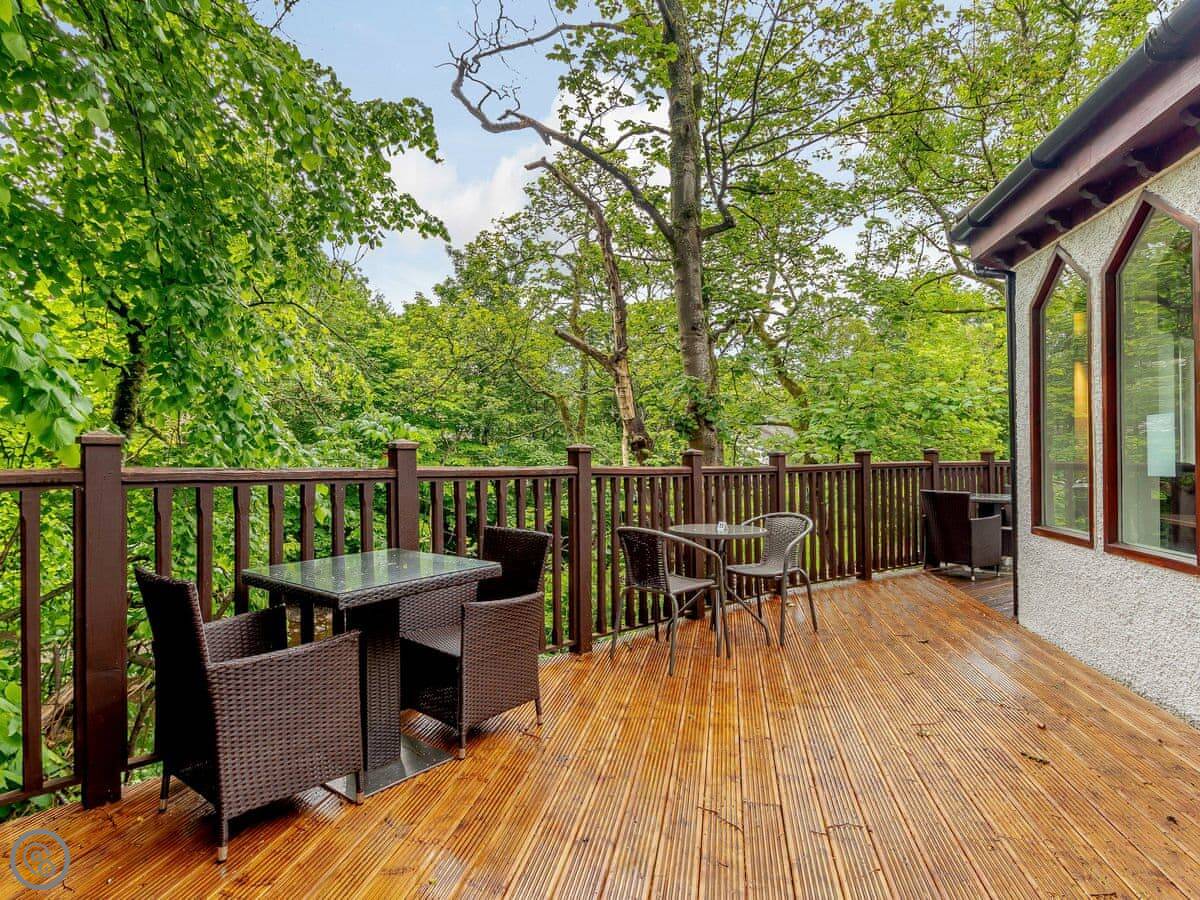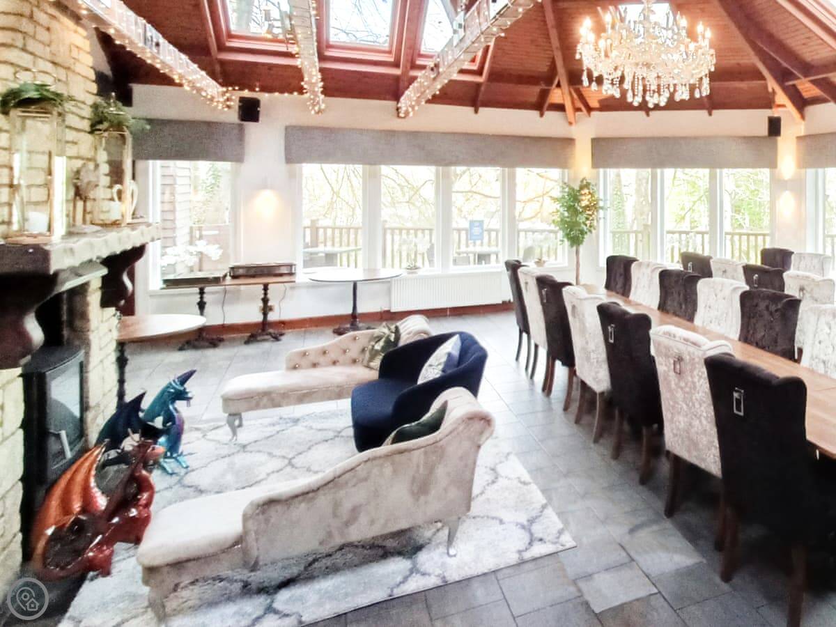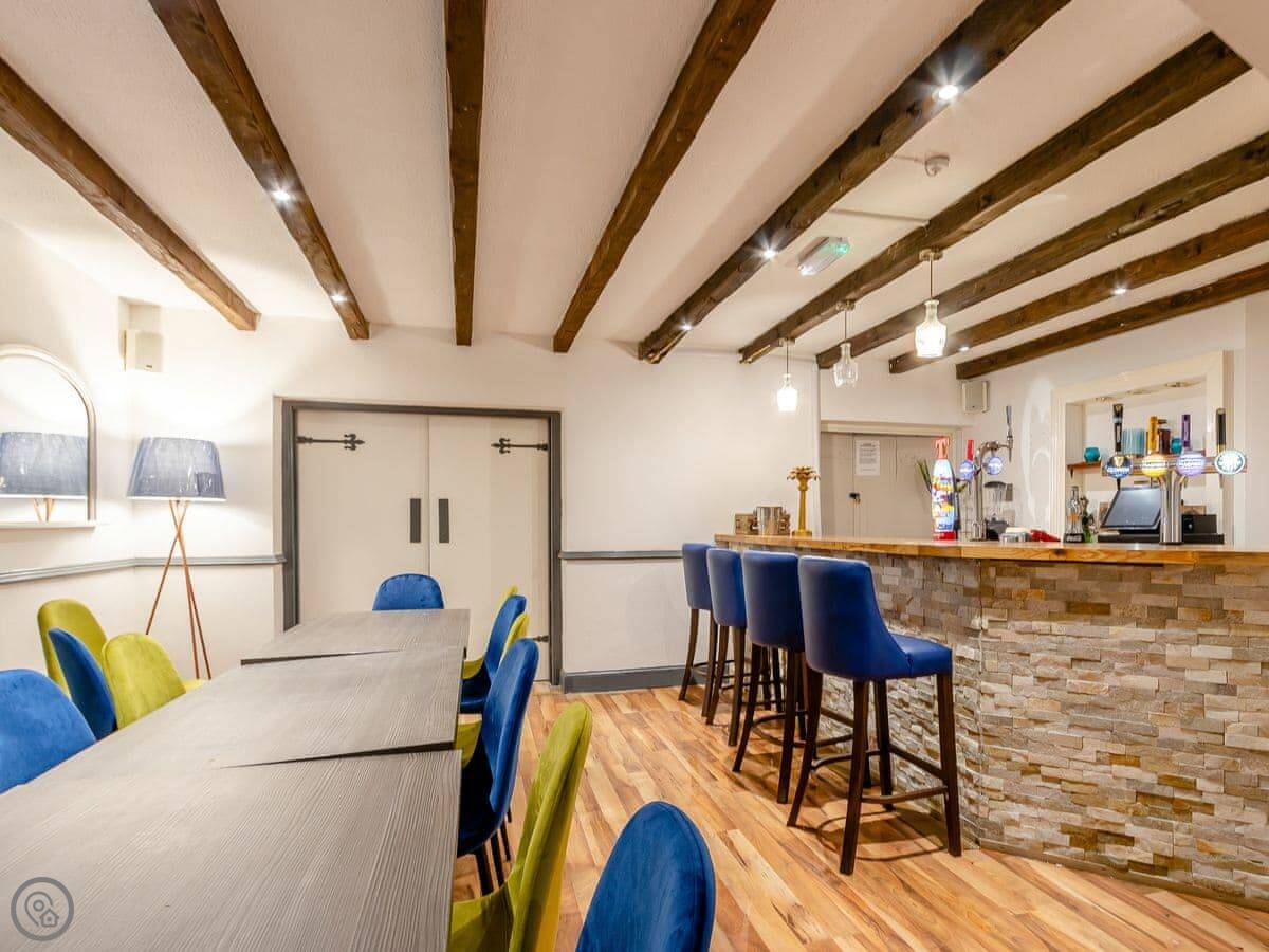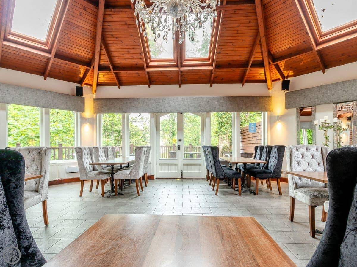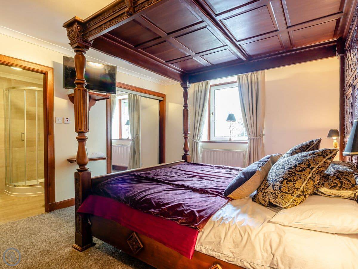 It has nine bedrooms and each one has its own bathroom. It's rated 4 Star. It's set up for parties and gatherings. There's a private bar, a function room, and a games room. The main draw is the spa part: there's an outdoor commercial hot tub that fits ten people, and an indoor thermal suite with a sauna and steam room, just for your group. The hot tub area is fenced off for privacy.