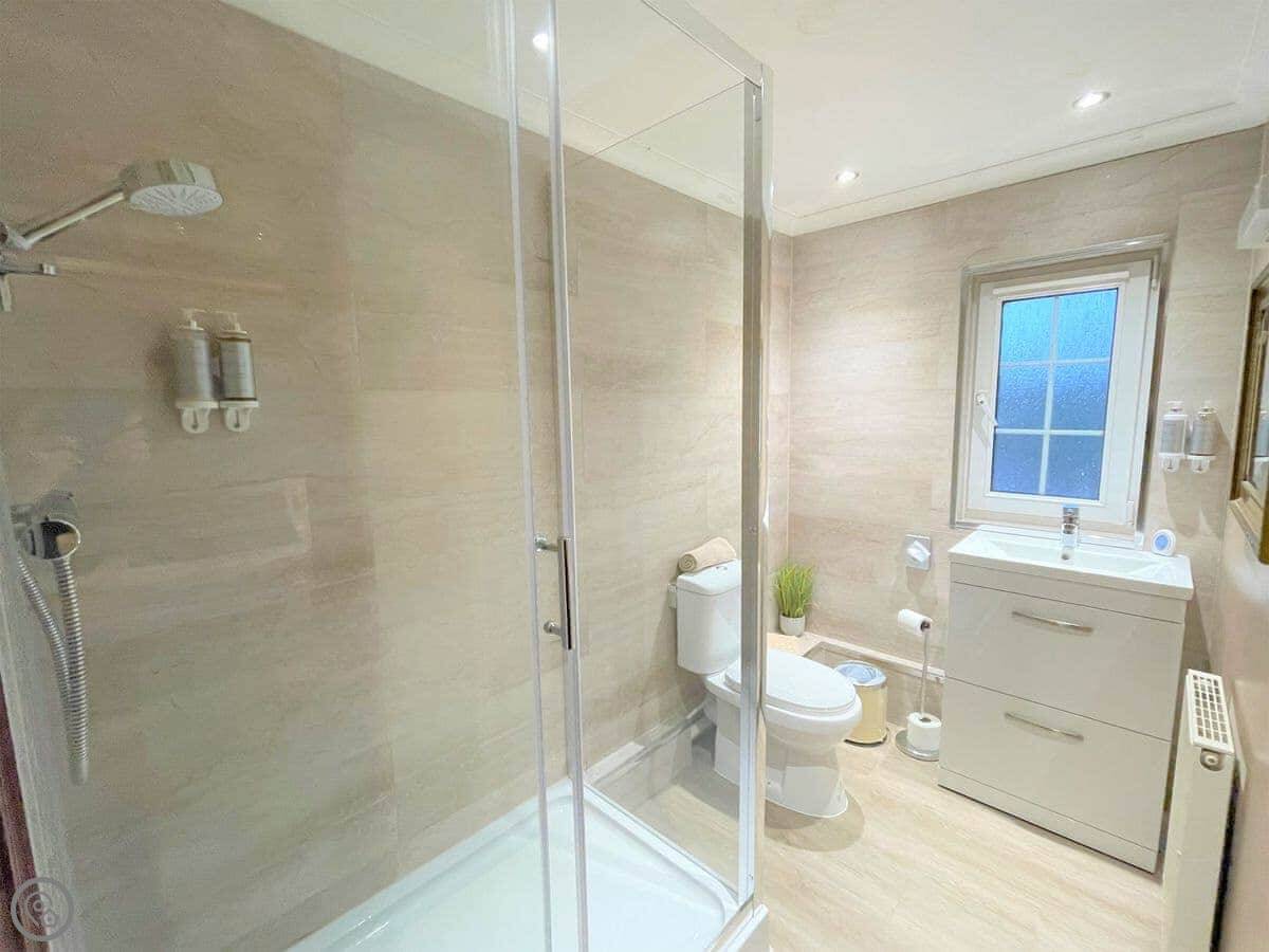Facilities include a woodburning stove, dishwasher, on-site parking, and WiFi. Bedding and towels are included. They have a cot and highchair. The entrance is wheelchair accessible. No pets.