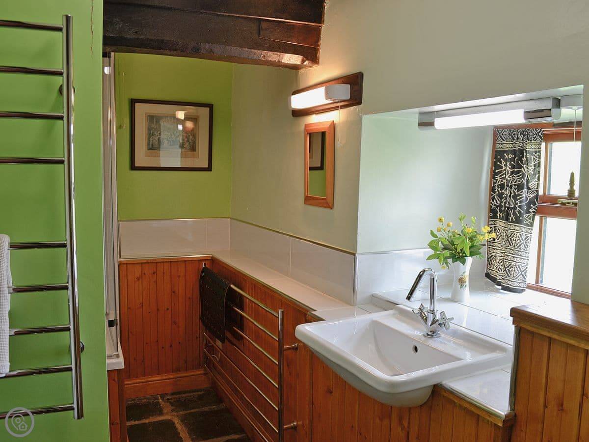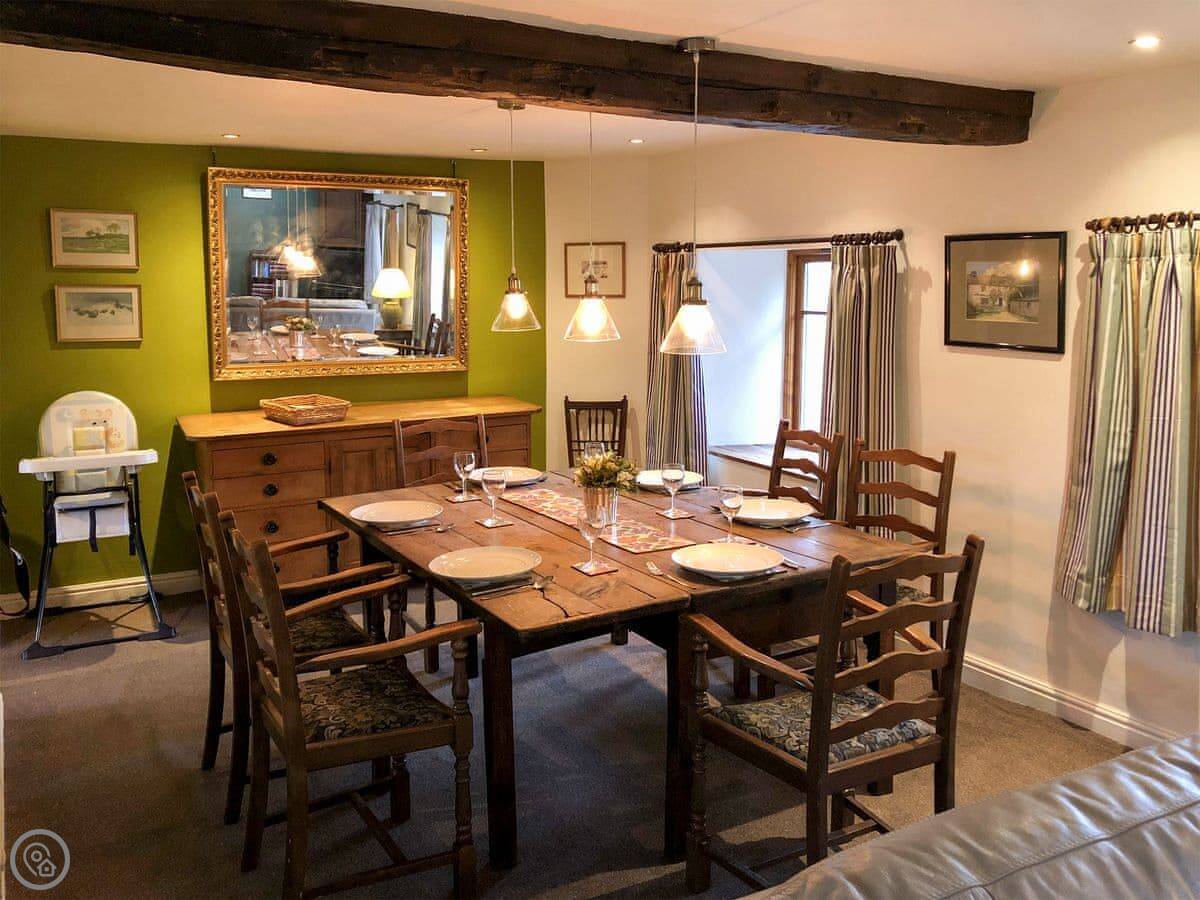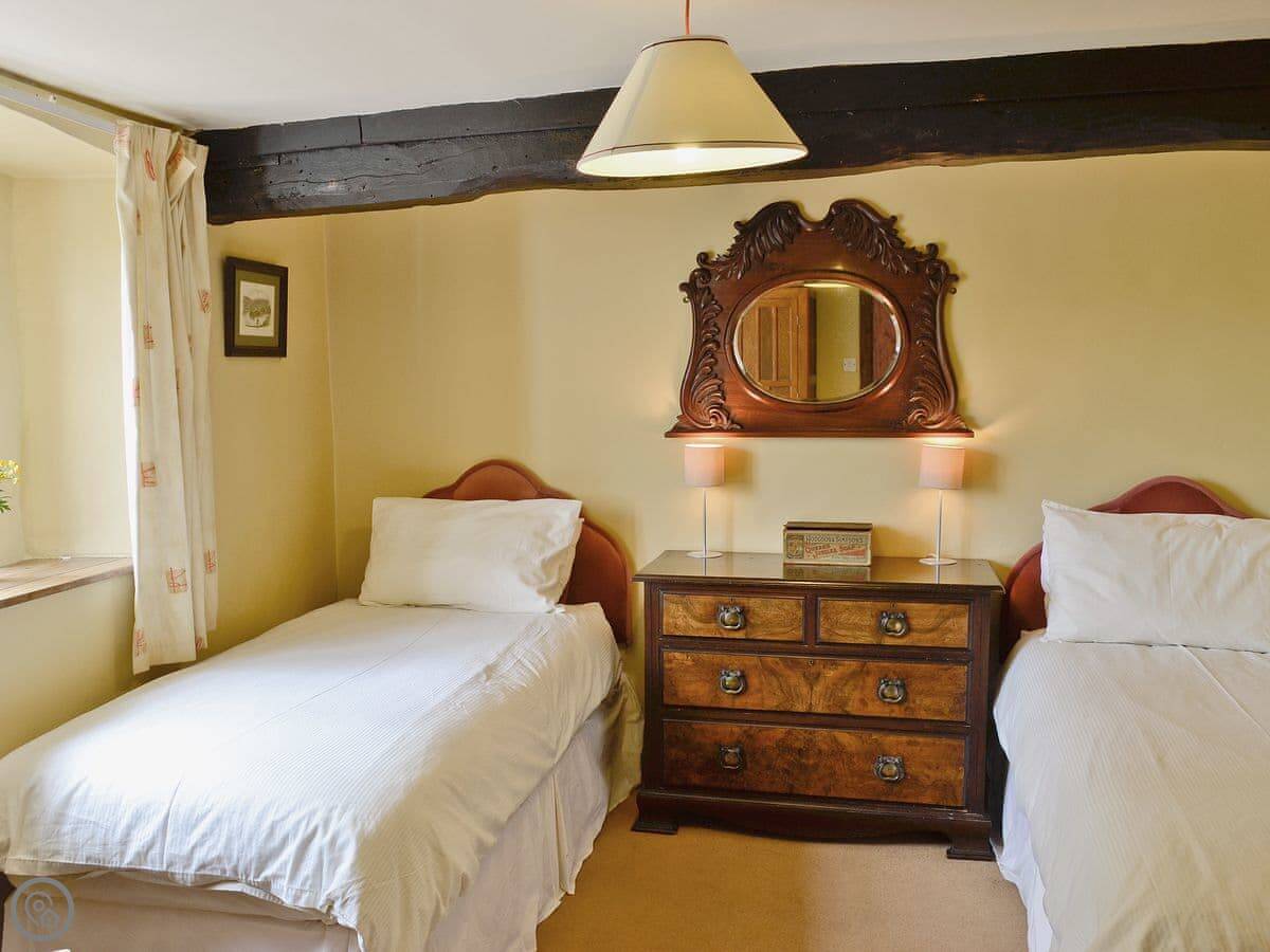 The cottage sleeps six in three bedrooms. There's one bathroom. It's got a 4 Star rating. It's been refurbished, but we kept the original stone flag floors, oak doors, and beams. The upstairs living room has the best views. The stairs are wooden and a bit steep, typical for an old place.