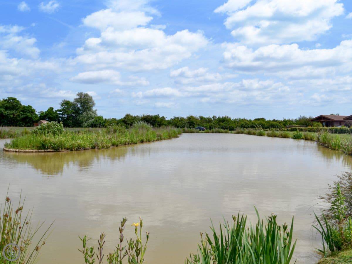The main thing is the private hot tub on the deck. You look out over the water from it. The lakes are for coarse fishing if you’re into that. They’re stocked with carp, barbel, bream, that sort of thing.