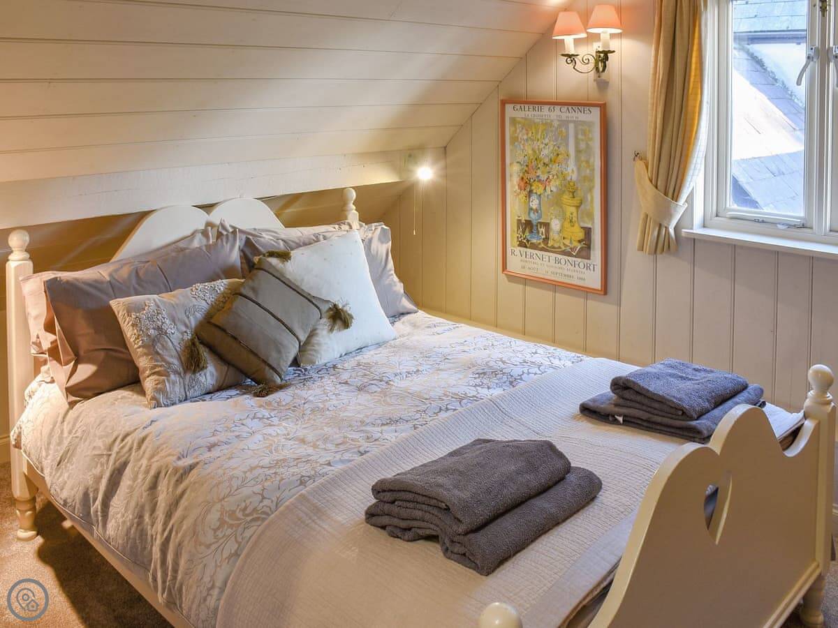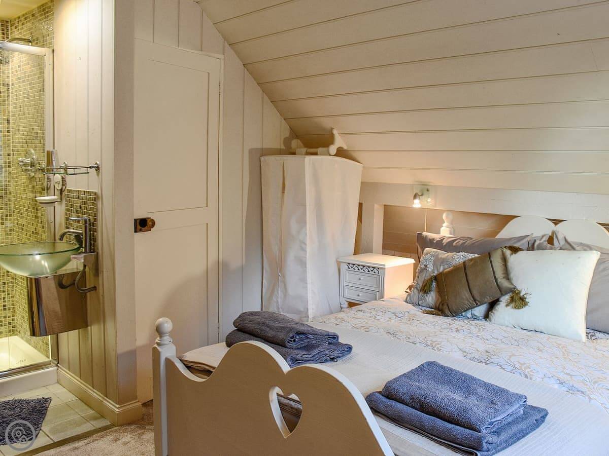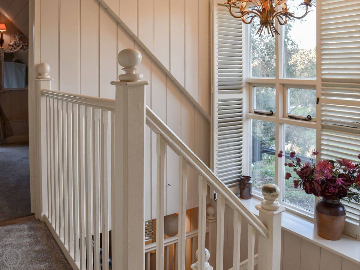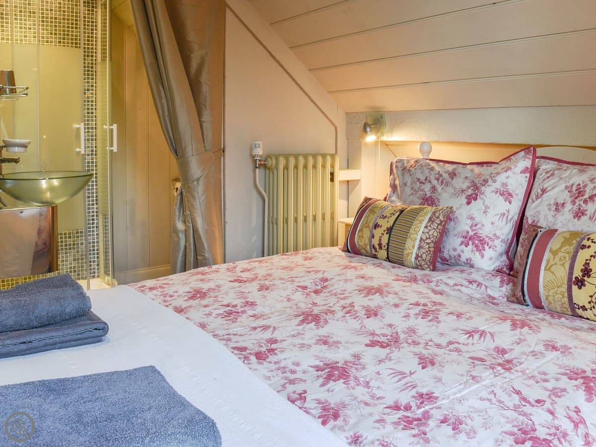 It sleeps four people in two bedrooms. Both bedrooms have their own bathroom, which is handy. It's got a 4 Star rating, so it's well looked after. The thing to know is the stairs. They're a spiral staircase and they're quite steep and narrow. It's just how the barn was built.
