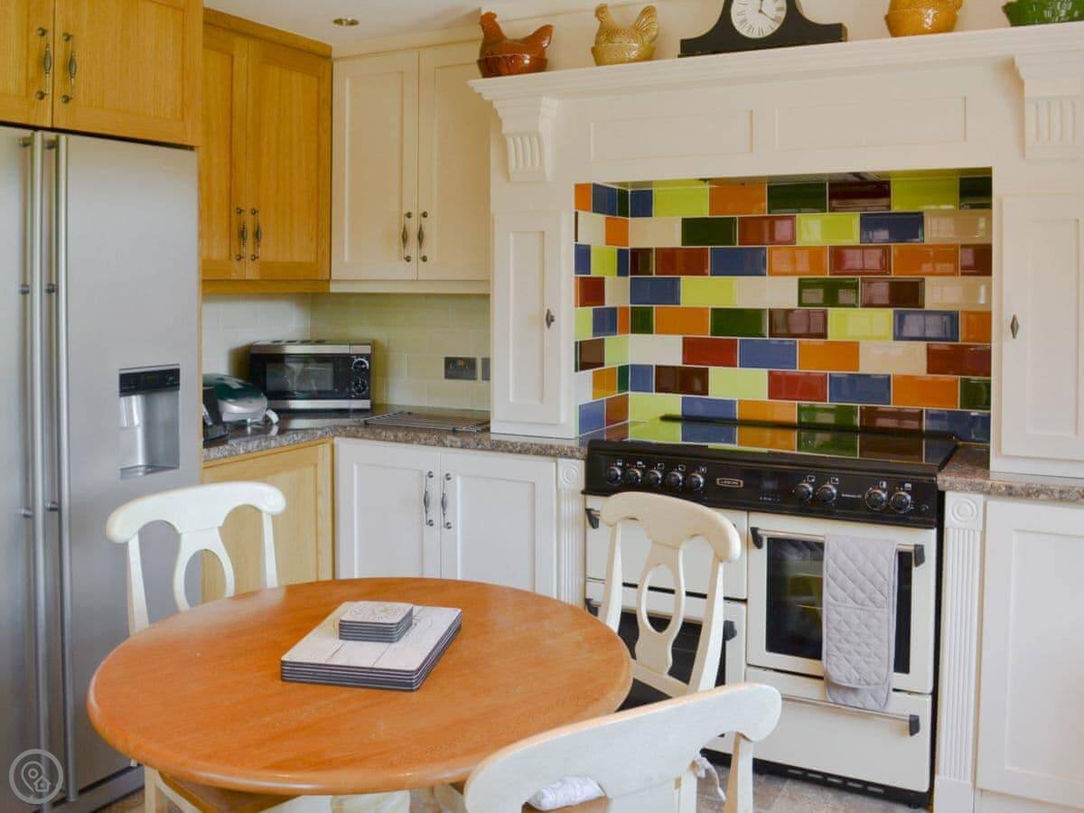 For facilities: it has a woodburning stove, a dishwasher, a washing machine, and a BBQ. Bedding and towels are included. There’s on-site parking and an electric vehicle charger. We allow up to two dogs. We can provide a cot, highchair, and stairgate.