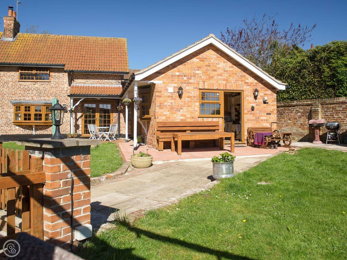 Boothby Cottage is in Welton le Marsh. It’s a detached cottage. There’s a stream that runs through the shared grounds, so you might hear water running. The cottage itself has its own enclosed garden.