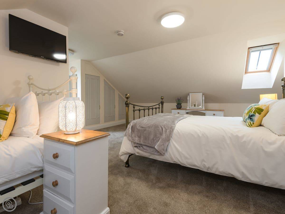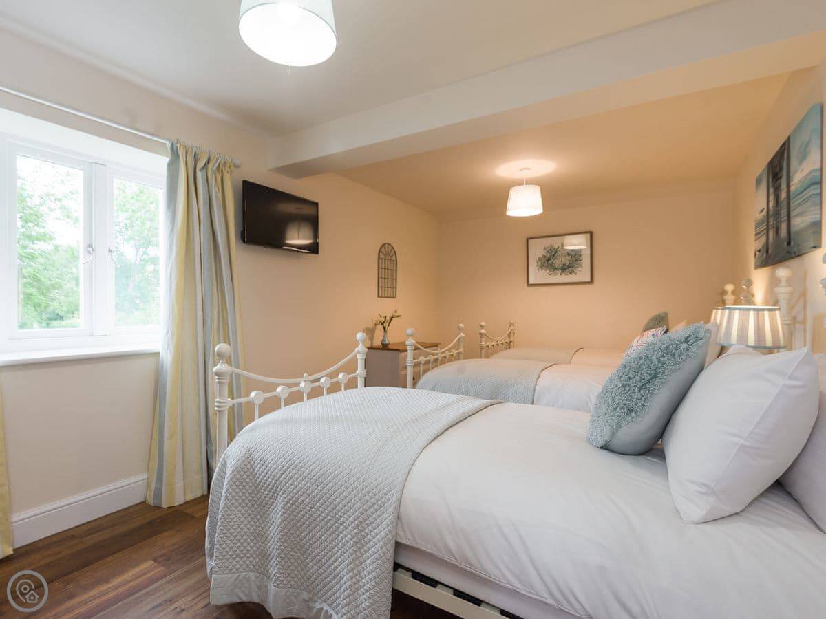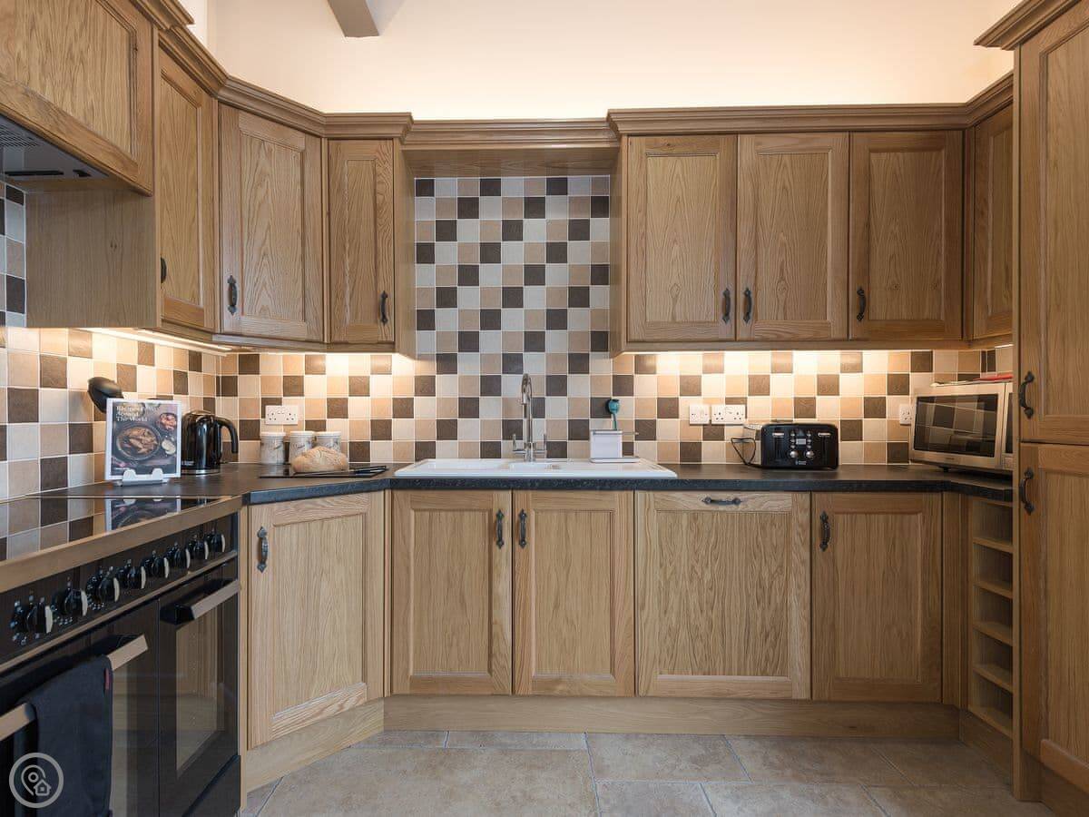 It sleeps ten in four bedrooms, with three bathrooms. The rating is 5 Star, so it’s well-equipped and comfortable. It’s furnished in a country style.