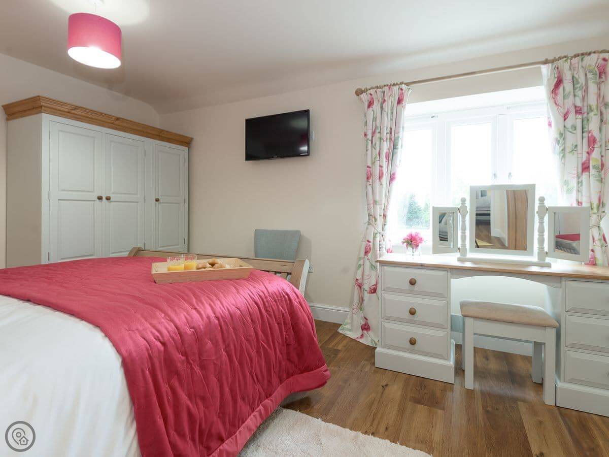 In terms of what’s here, the barn has a washing machine, dishwasher, WiFi, and TV. We can provide a cot, highchair, and stairgate. Bedding and towels are included. We accept up to two dogs.