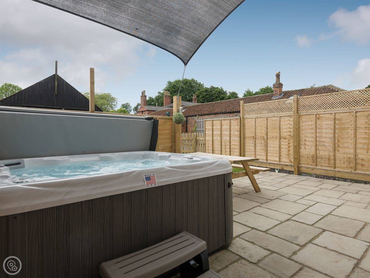 You get your own enclosed garden with a patio and a hot tub. There’s off-road parking right outside. The garden looks out over the river bank.