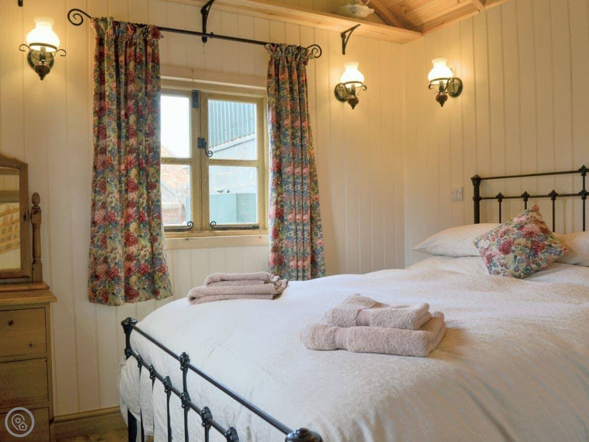 Inside it's one room with a double bed. It's well-fitted and has everything you'd need. We've got WiFi, a TV, a washing machine you can use, and your own parking space. Bedding and towels are included. We can provide a cot and highchair if needed.
