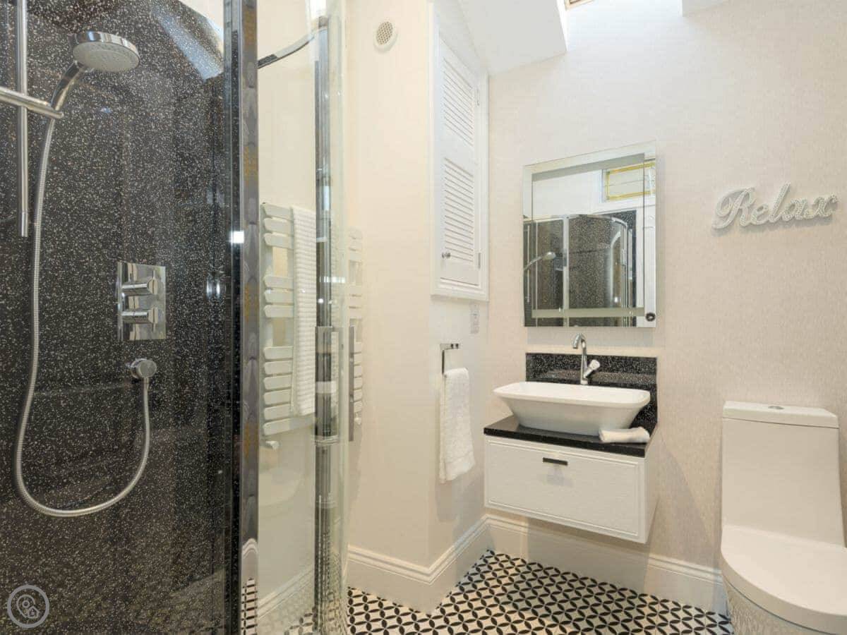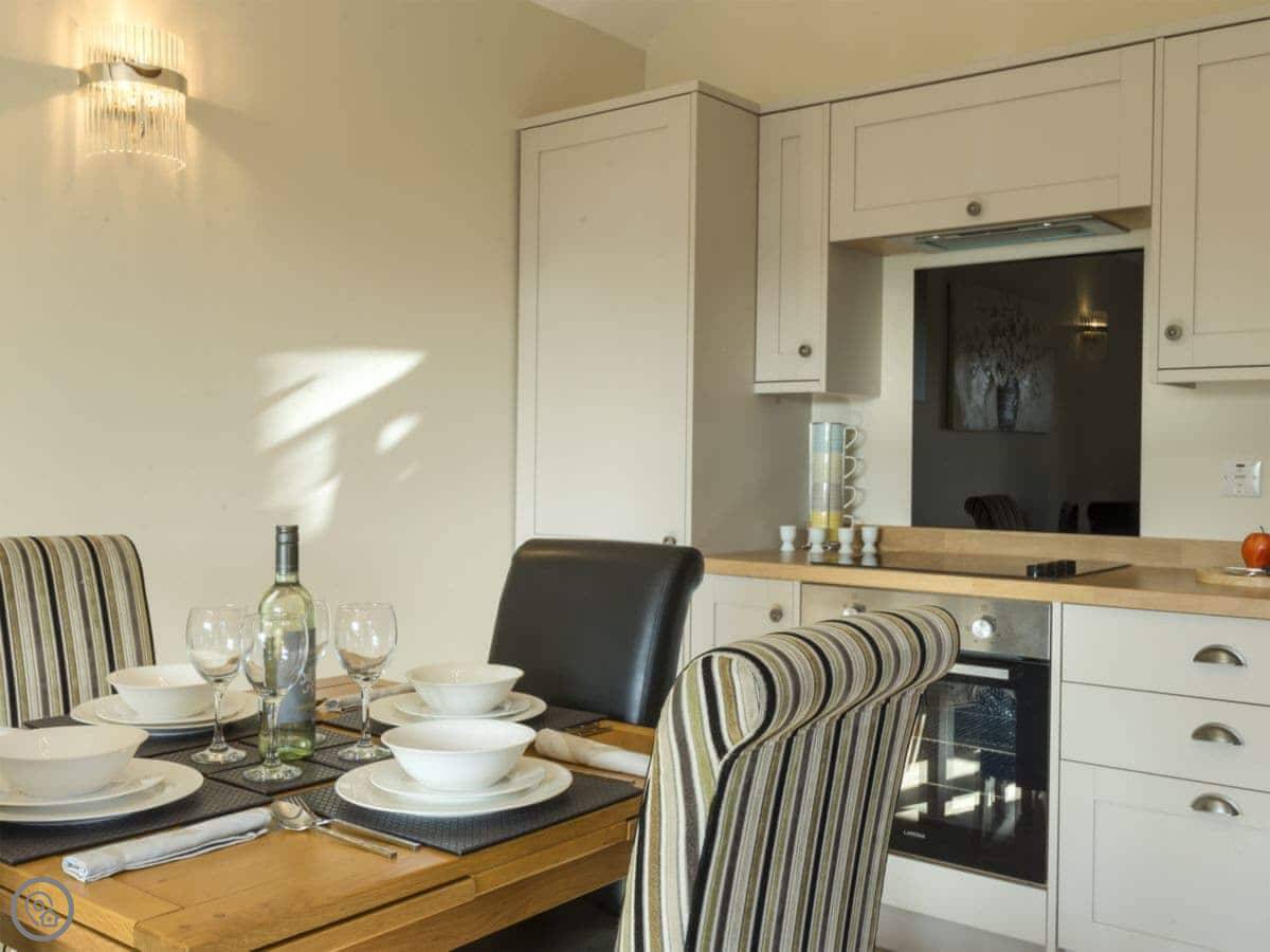 Inside, it's got a washing machine, a dishwasher, and WiFi. Bedding and towels are included. There's a cot and a highchair if you need them.