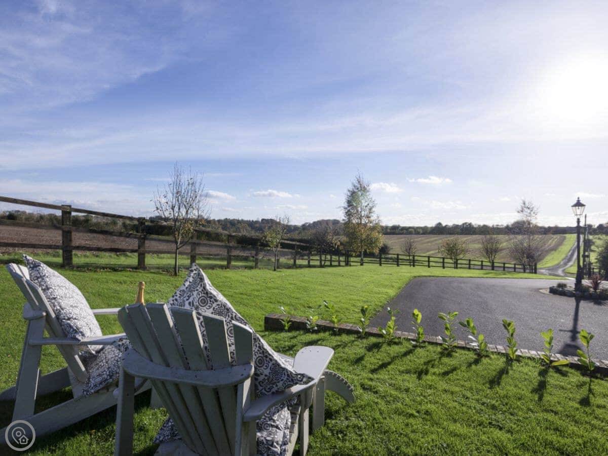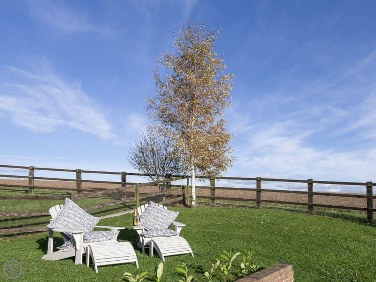 Outside, you've got your own patio area with a table and chairs, and a BBQ. It looks out over our field. It's very quiet.