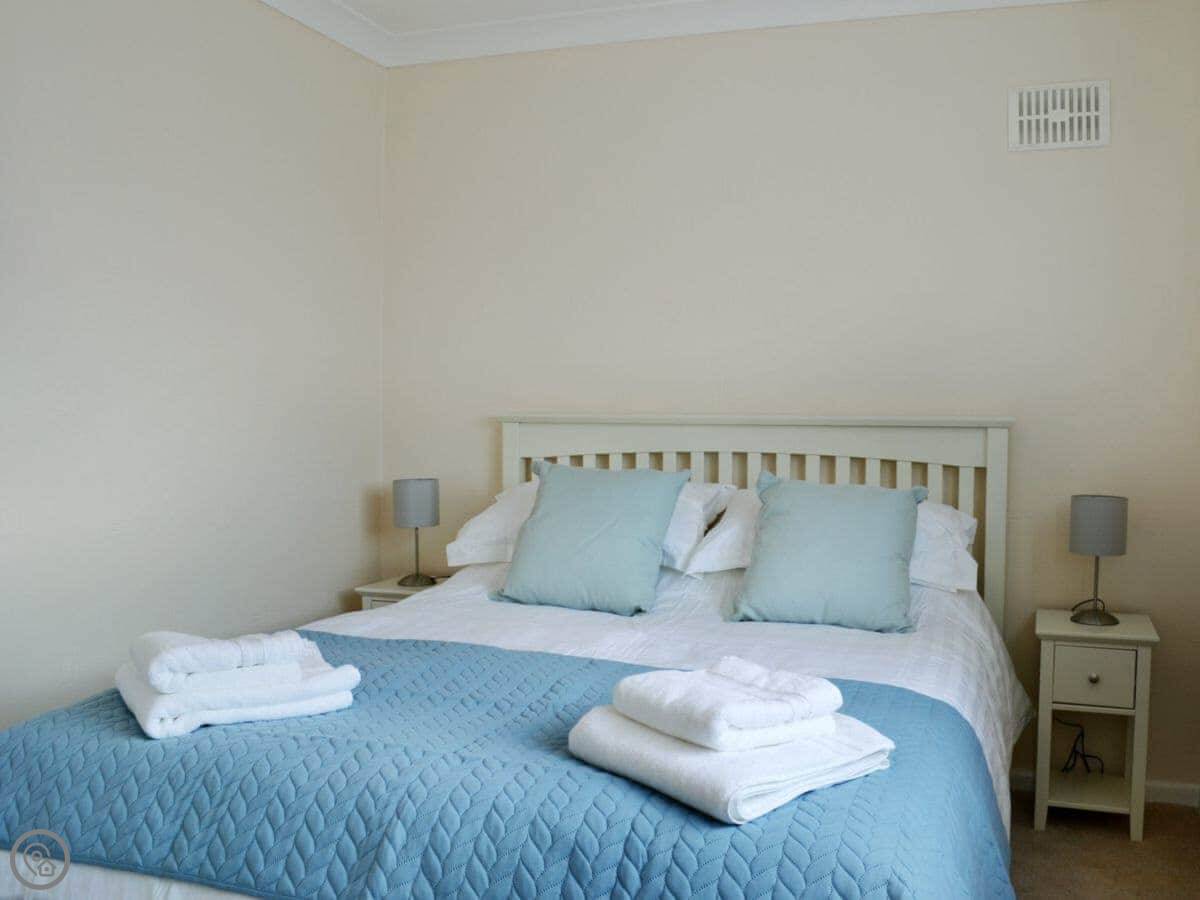 It's across the road from the bowling green. The beach is a short walk away, maybe two or three minutes. It's a sandy beach.