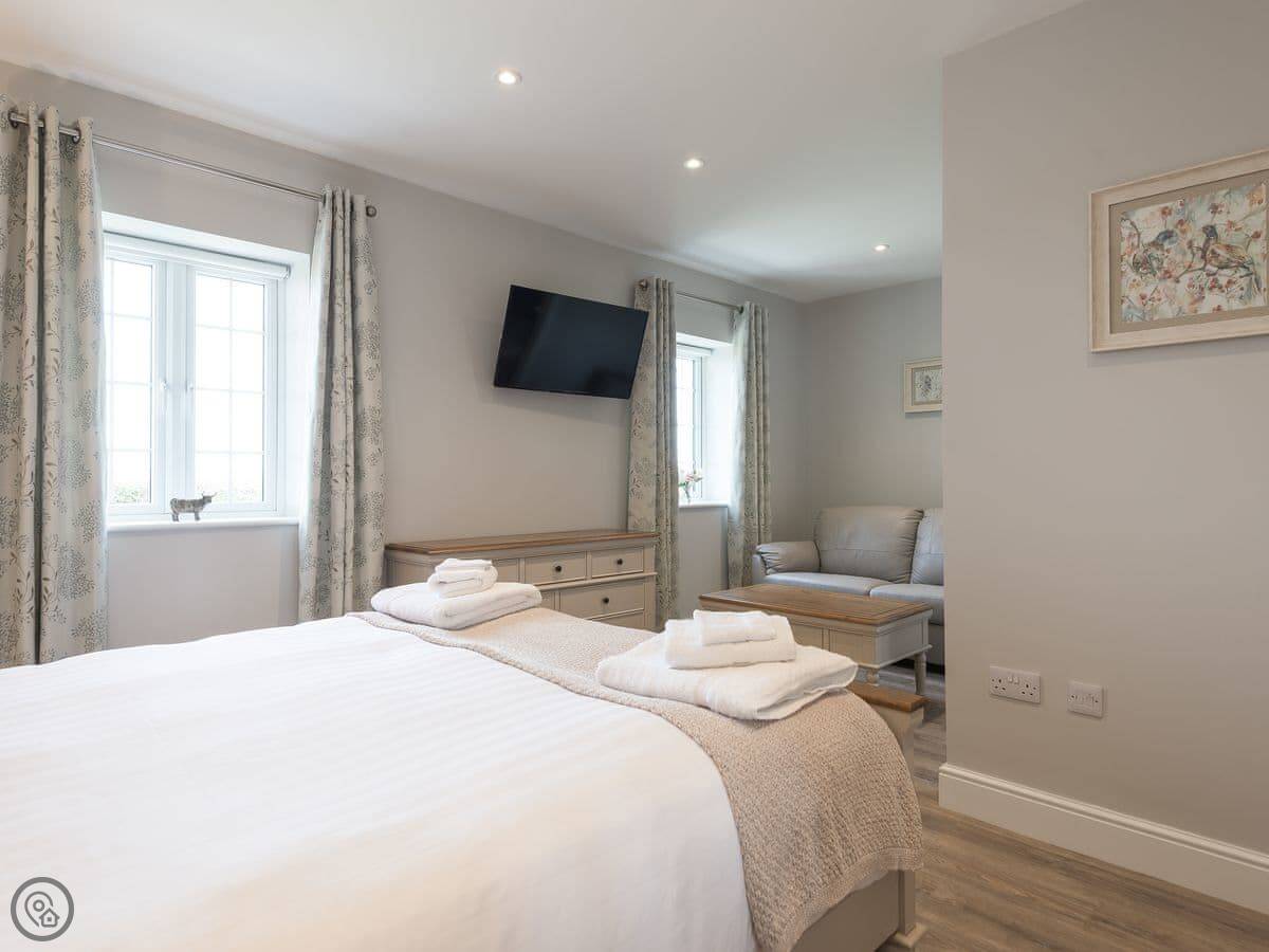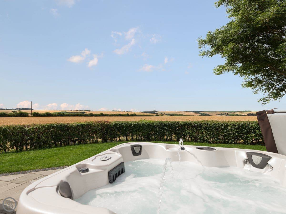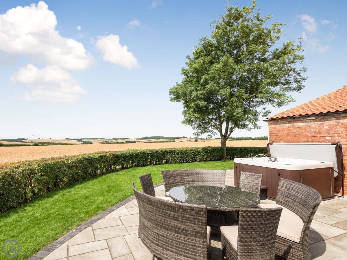 The main thing is the view. You can see right across the Wolds and on a clear day you can see the coast. The garden is south-facing and enclosed, so it's good if you've got kids or a dog. There's a patio with a BBQ and a hot tub.