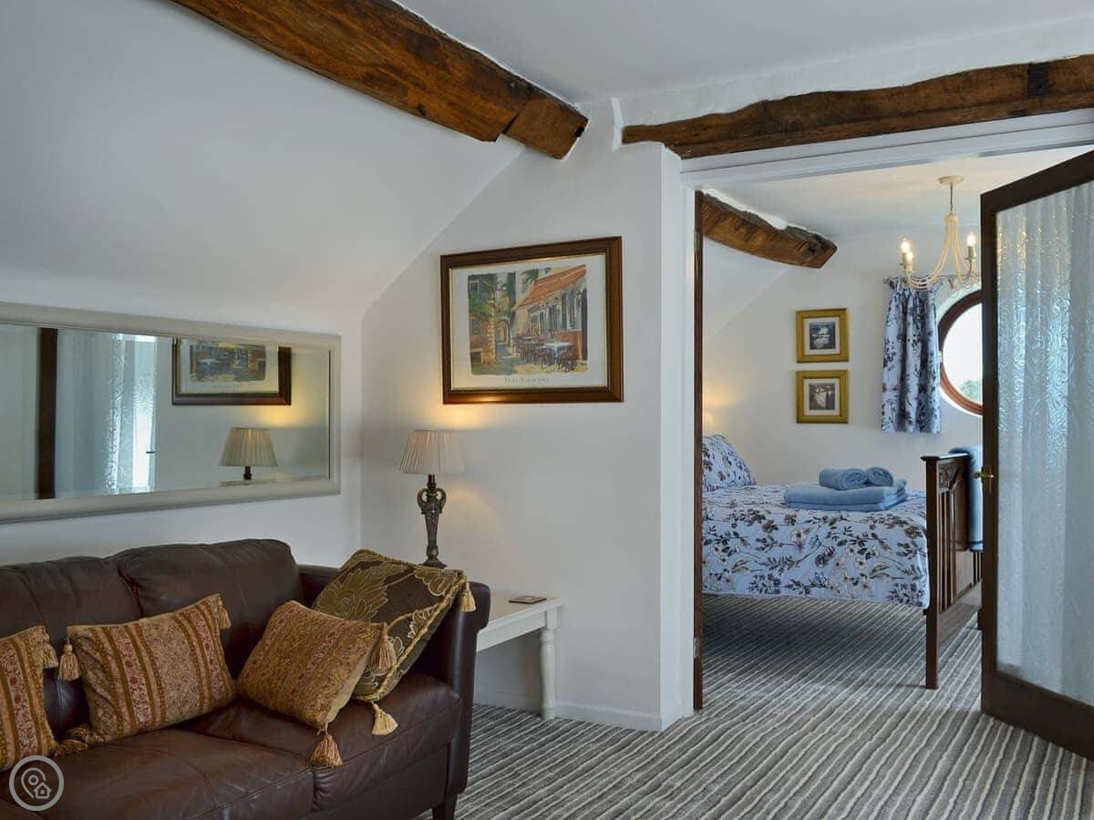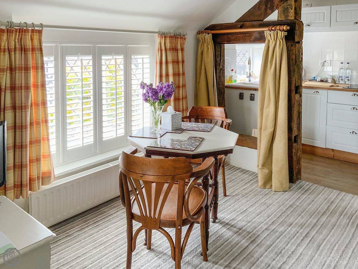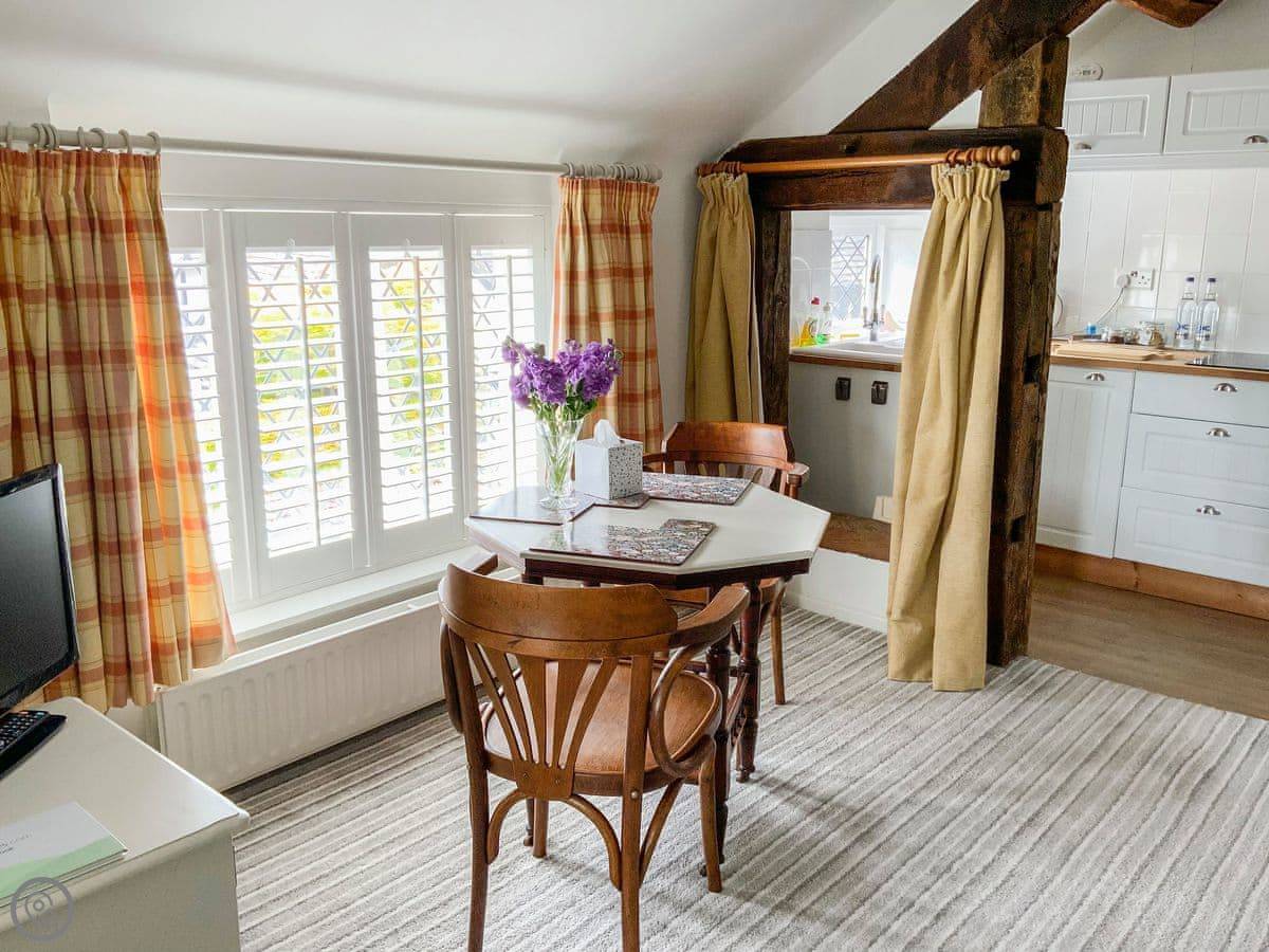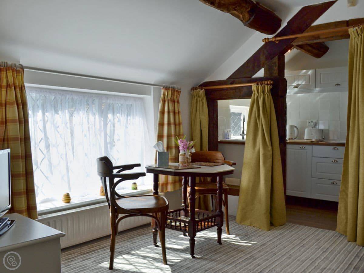 The Beehive is a one bedroom apartment on the first floor of our house. It's on a quiet lane in Buddileigh, Staffordshire. You get your own parking space next to the drive, and a small private patio area with a table and chairs. It sleeps two, has one bathroom with a shower, and a kitchen with the basics.