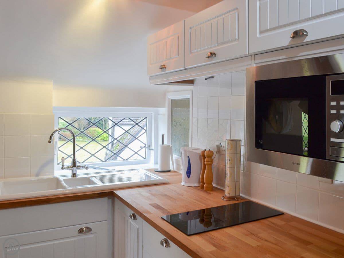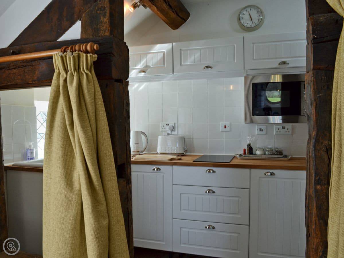 The kitchen has a fridge, microwave, hob and oven. There's a washing machine too. The stairs up to the apartment are internal, they're fine but they're a bit steeper than a normal house.
