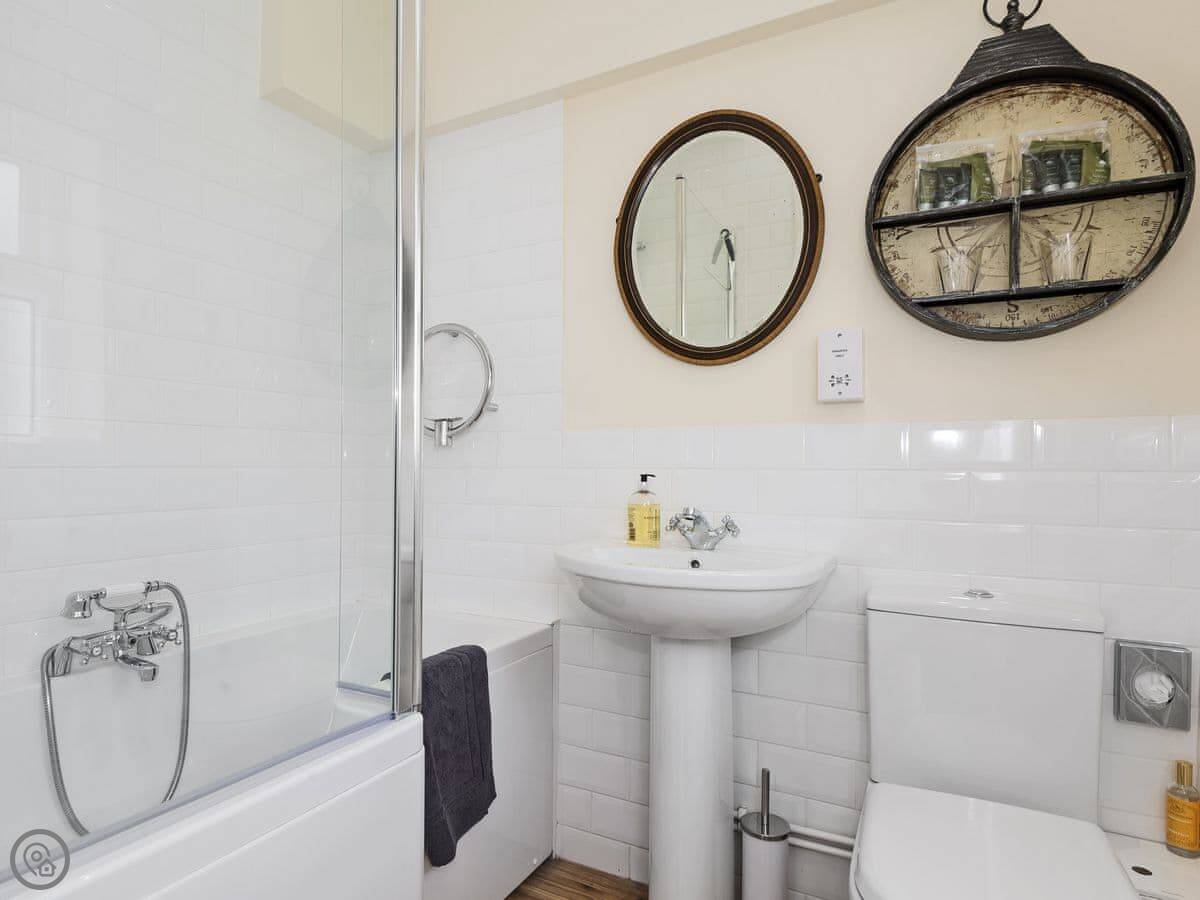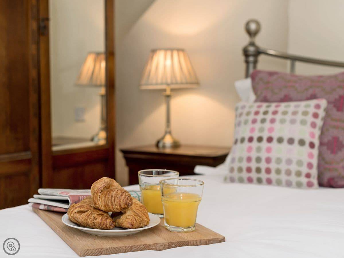 It sleeps six. Three bedrooms, two bathrooms. It's a 4 Star place. The family has owned it since 1950, and we've recently refurbished it. The stairs to the master bedroom are a typical cottage staircase, so they turn a corner and are a bit steep. The other two bedrooms and a wet room are on the ground floor.